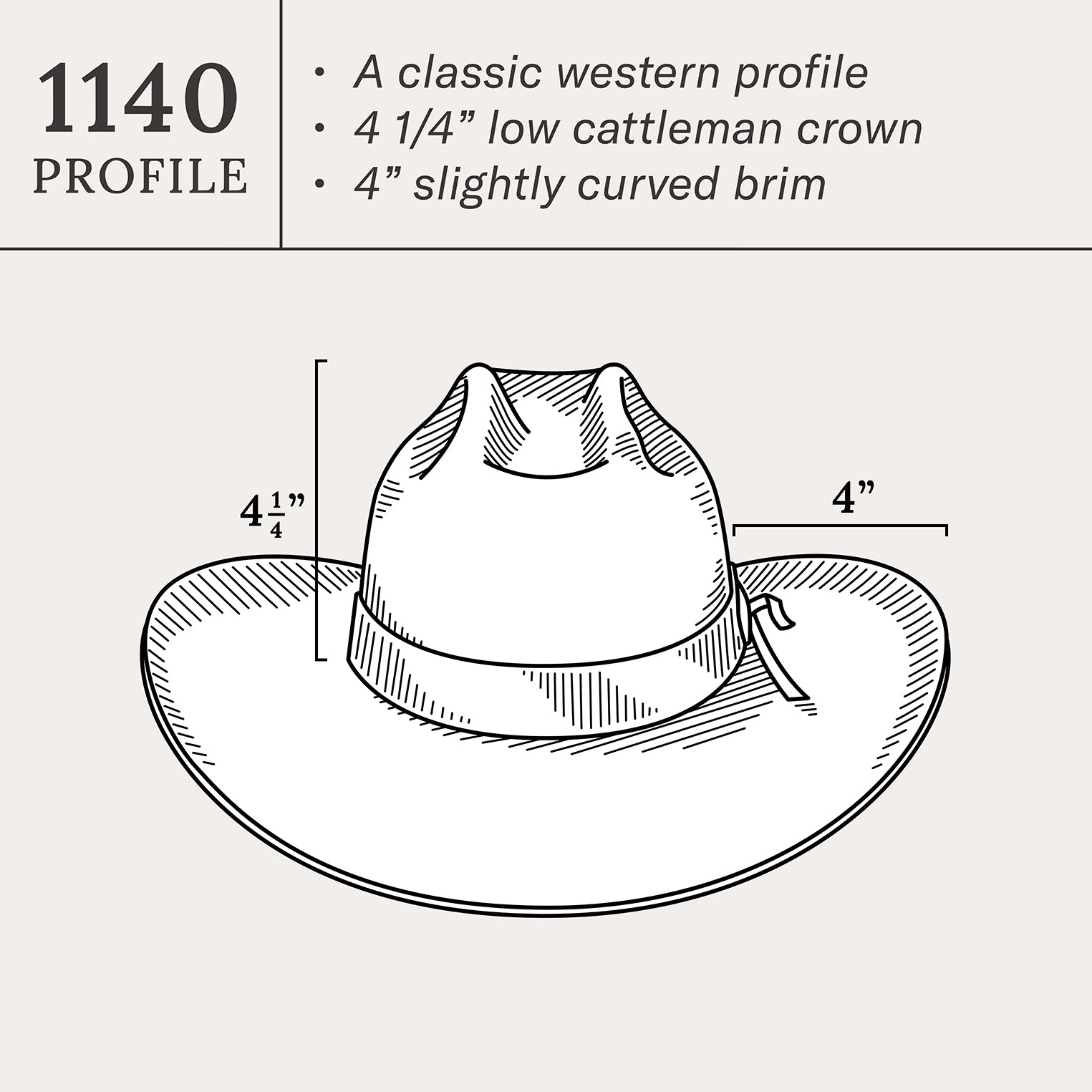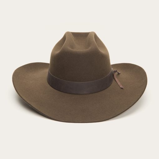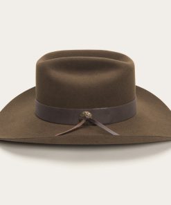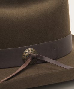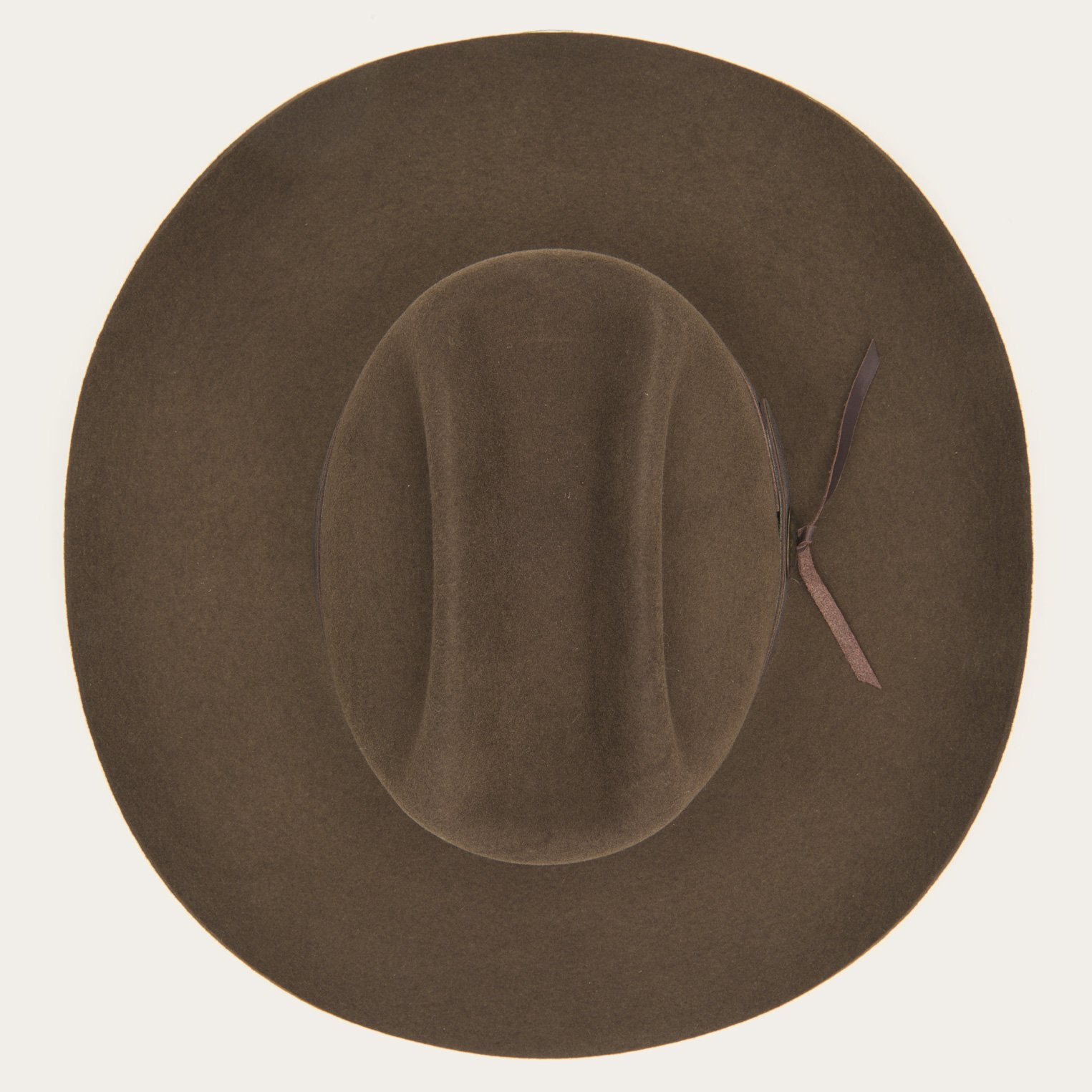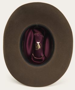 As John Wayne said, “Courage is being scared to death, and saddling up anyway.” Scared to death or not, in the 11 Stageline—part of Stetson’s John Wayne collection—you’ll be ready to ride. In a deep oak color, the leather band, timeless fur felt construction, and Western detailing of this hat makes it a legend in the making. Satin crown lining under a cattleman crown.