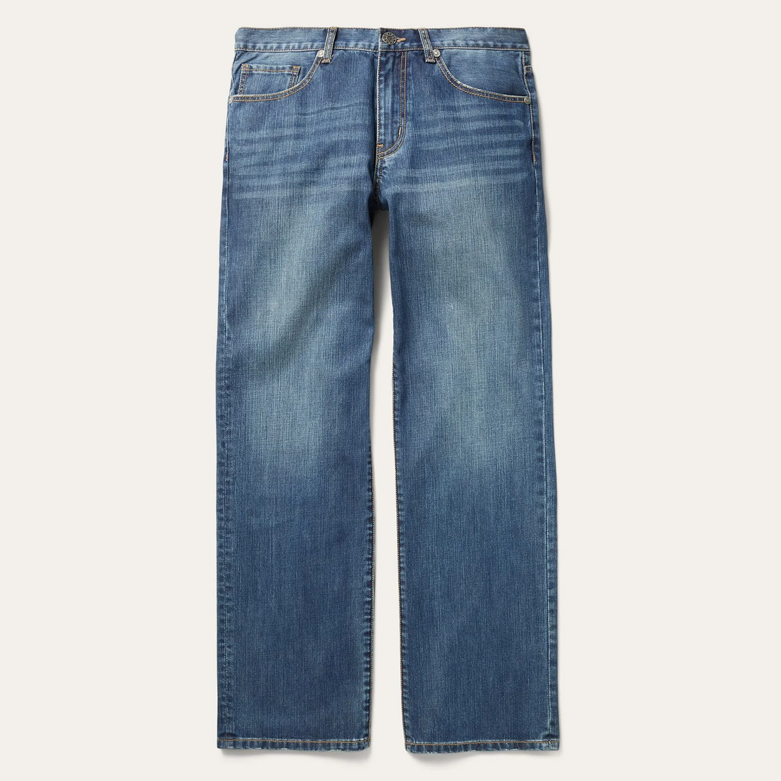 Rugged, timeless, practical. These medium wash jeans are cut with a modern, universally flattering fit with a slight low rise, and they’re relaxed through the thigh before ending in a boot cut leg. The premium denim is naturally tough, and has been hand-sanded and whiskered for a comfortable feel and authentically worn-in look that only gets better over time.