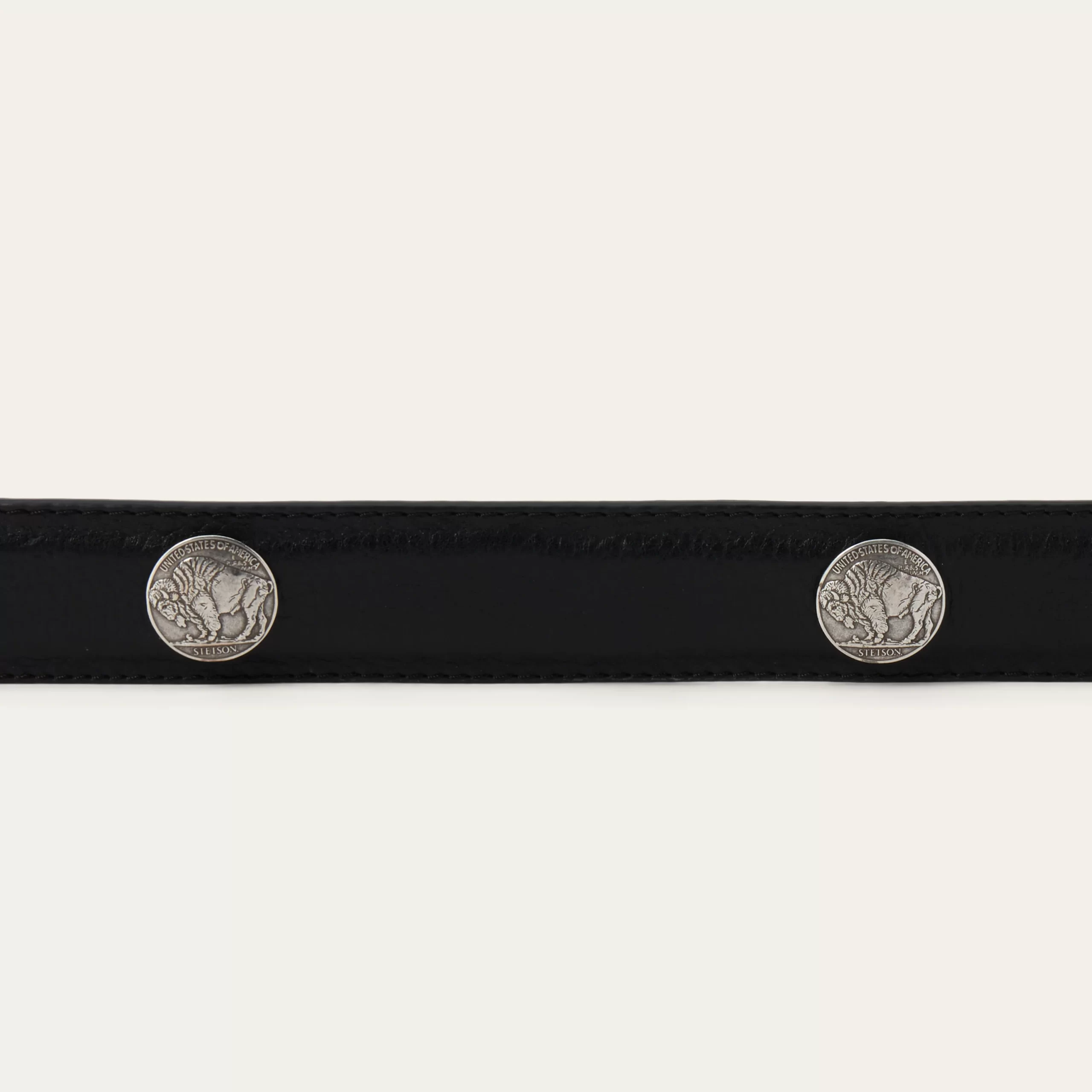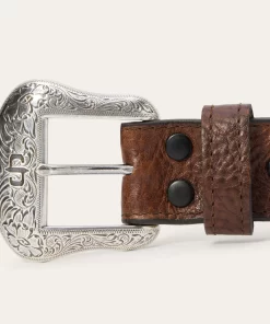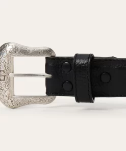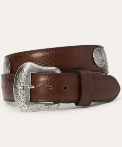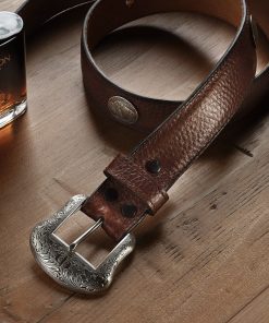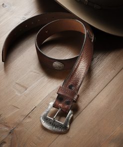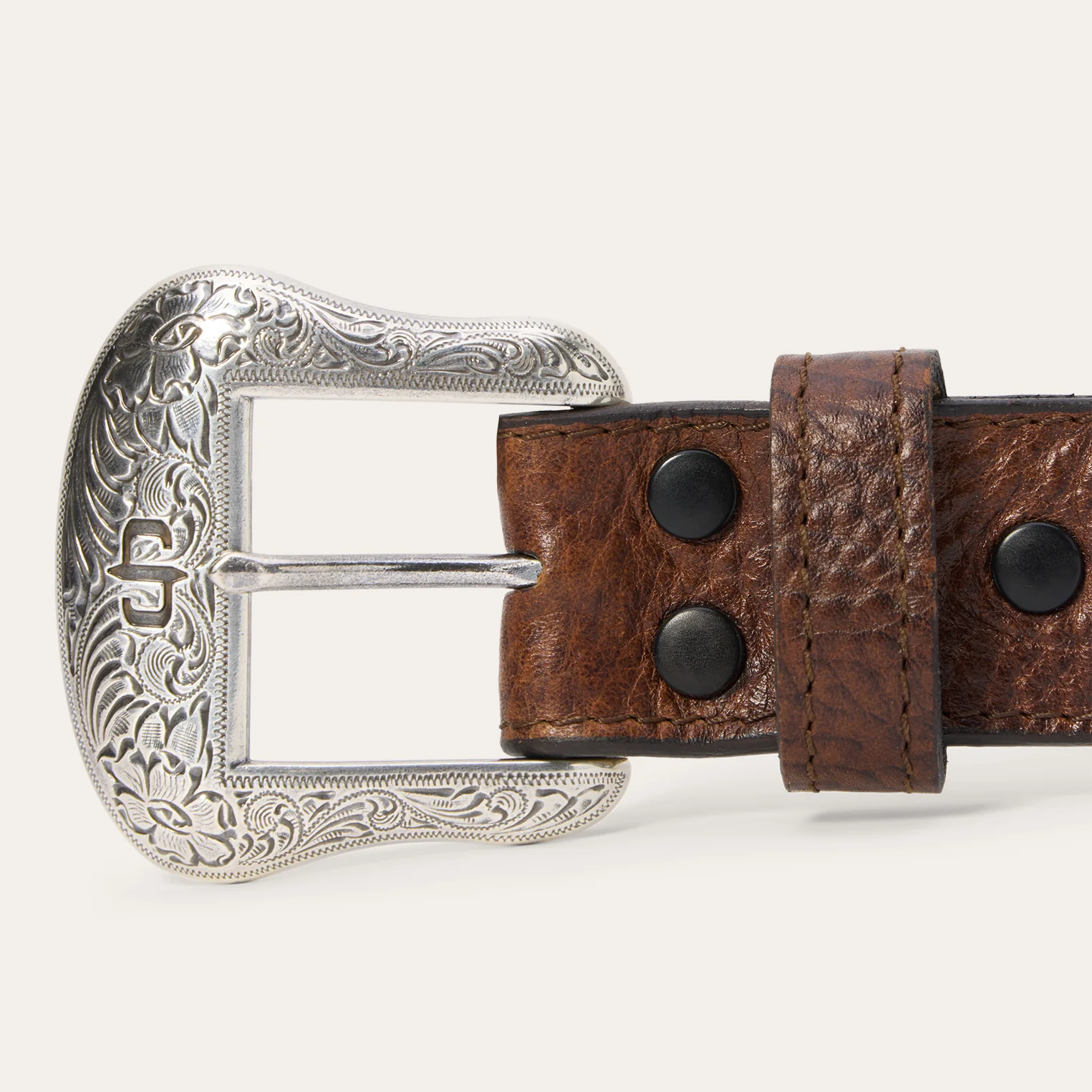 Made from genuine American Bison leather, this belt has a 1 ½” wide hazelnut Bison leather strap with tooled leather tabs and silver-tone Bison concho repeat. It features seven holes on the point end to ensure a proper fit for all body types and is finished with a silver-tone Stetson buckle. At once rugged and refined, each of our belts embodies our legendary commitment to quality and attention to detail.