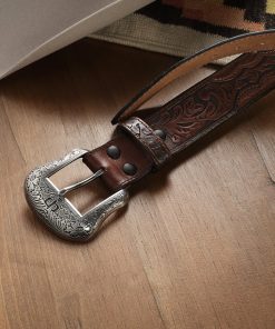 Stetson Bison Leather Tooled Tab Belt Hazelnut Bison | Mens Belts