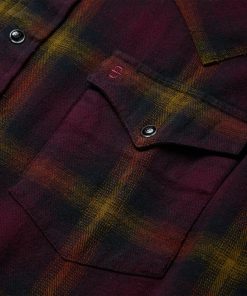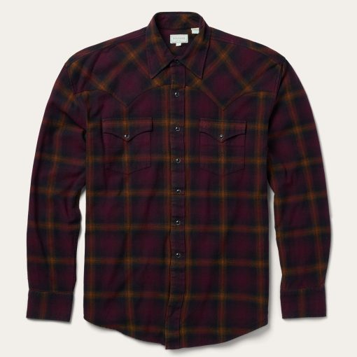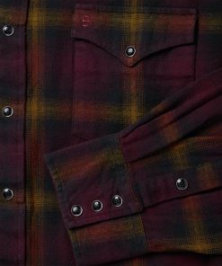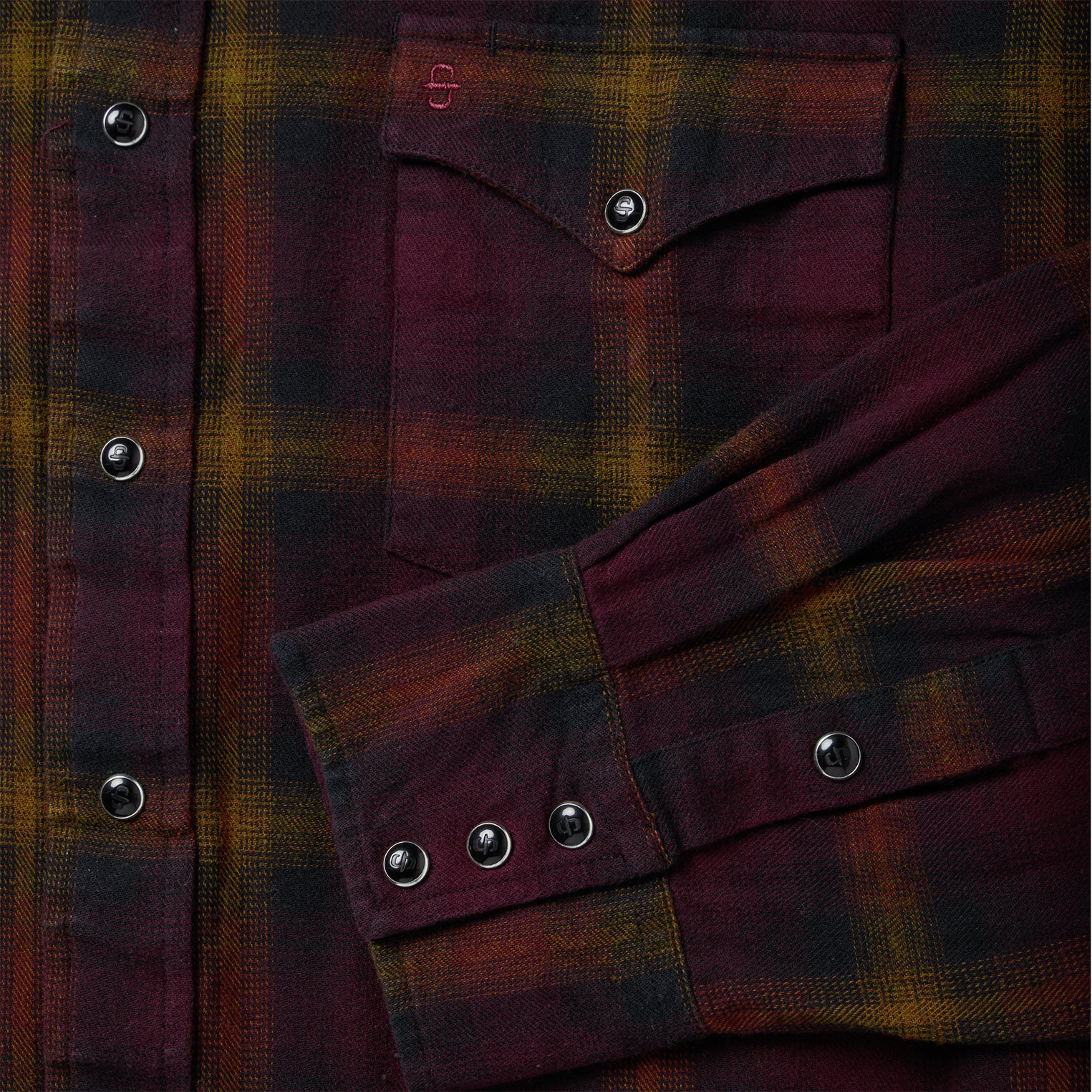 This rugged snap-front flannel shirt features an exclusive black wine plaid pattern along with classic western style details like a one-point curved back yoke and a three-snap roper cuff. Crafted from a 100% cotton twill flannel that has been yarn-dyed for rich, lasting color and brushed for a soft appearance, the shirt is garment washed, giving it the lived-in feel of an old favorite that will break in further over time. It has a spread collar with collar stays to keep it in place and is cut in our Original Fit, which allows for comfort and freedom of movement. Exceedingly durable and always comfortable, our shirts are hard-wearing and built to last.