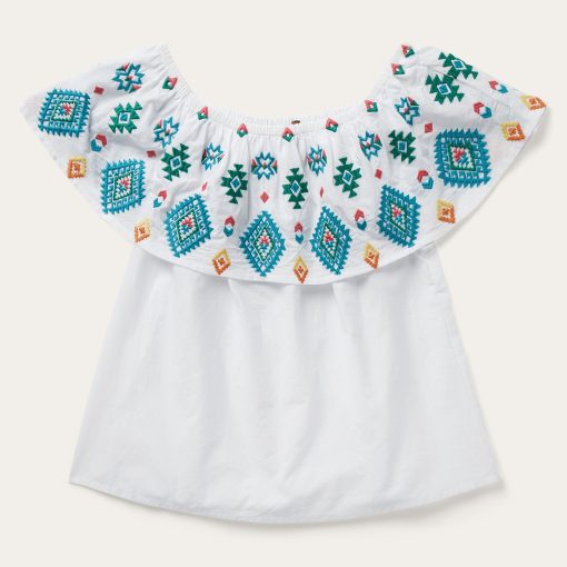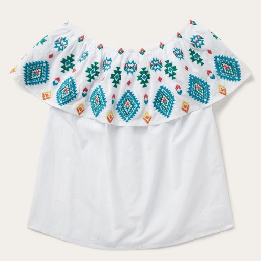 Stetson Bright Schiffli Embroidered White Cotton Lawn Blouse White | Womens Shirts
