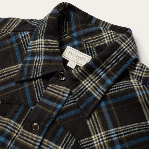 This rugged snap-front flannel shirt features an exclusive brown plaid pattern along with classic western style details like a one-point curved back yoke and a three-snap roper cuff. Crafted from a 100% cotton twill flannel that has been yarn-dyed for rich, lasting color and brushed for a soft appearance, the shirt is garment washed, giving it the lived-in feel of an old favorite that will break in further over time. It has a spread collar with collar stays to keep it in place and is cut in our Original Fit, which allows for comfort and freedom of movement. Exceedingly durable and always comfortable, our shirts are hard-wearing and built to last.