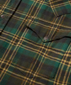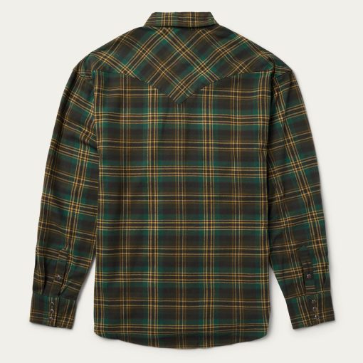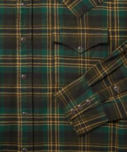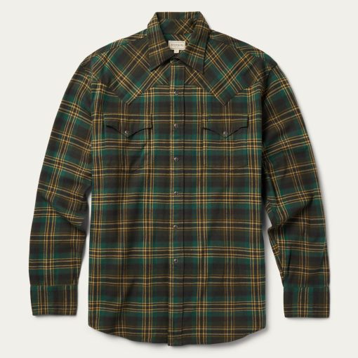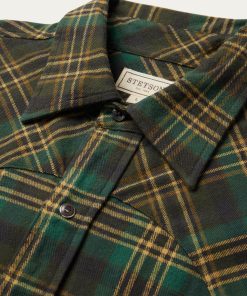 Stetson Brushed Flannel Western Shirt Green | Mens Shirts