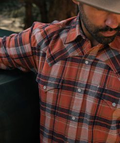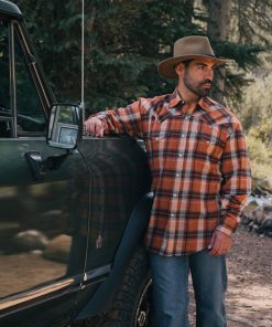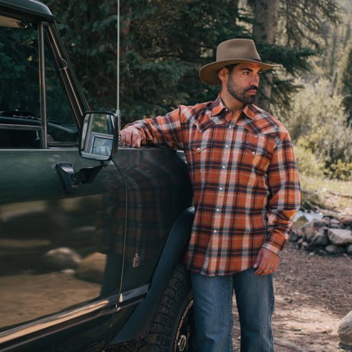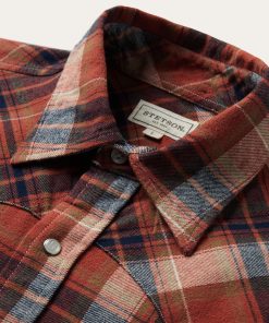 Stetson Brushed Twill Plaid Shirt Orange | Mens Shirts