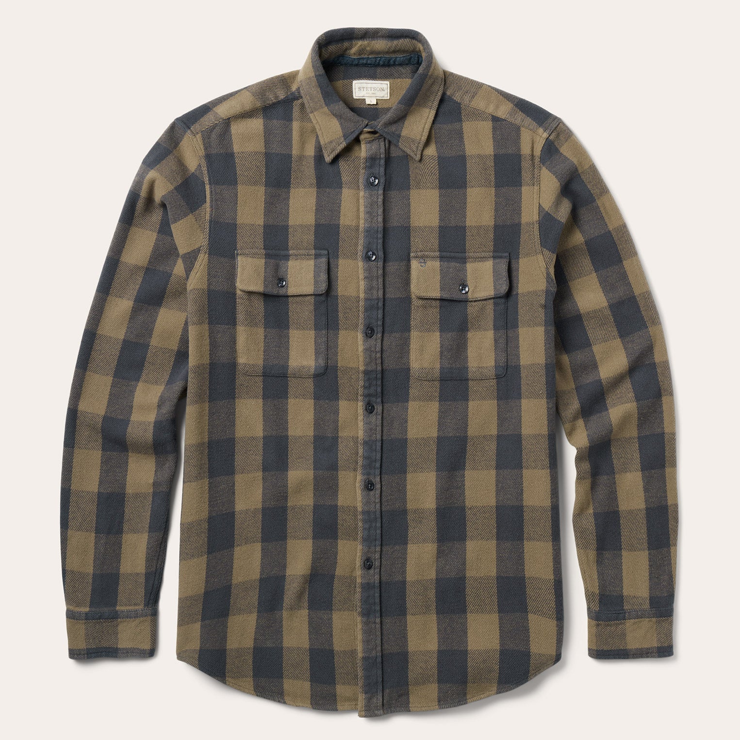 This flannel button-down shirt is crafted from high-quality brushed cotton twill that’s been garment washed for a soft feel that will only improve over time. It has no front yoke, a straight back yoke, two patch chest pockets with flaps and button closure, subtle Stetson embroidery on the chest and right cuff placket, button front and two-button cuffs. Cut in our original fit for a traditional silhouette that allows for freedom of movement.