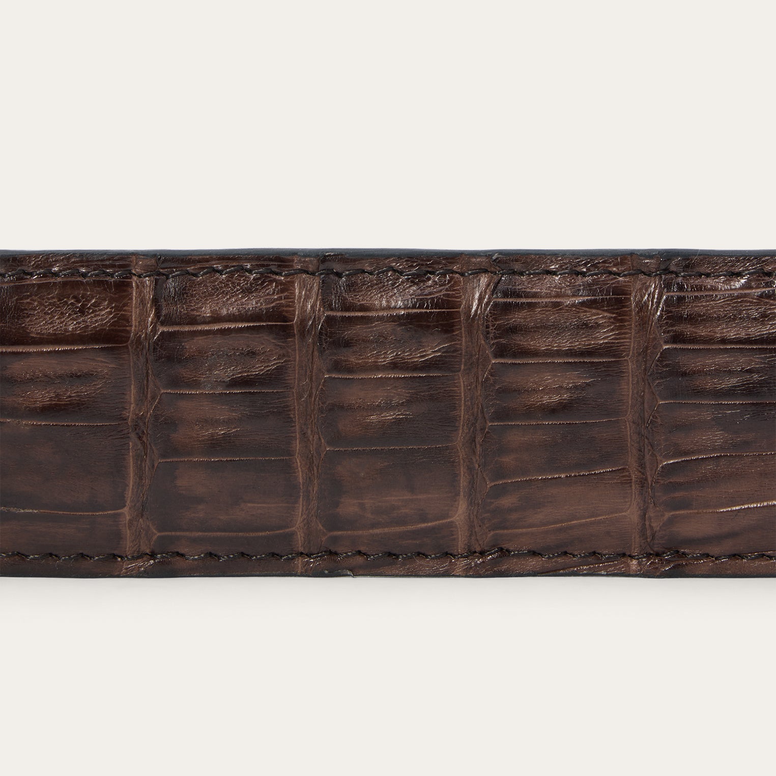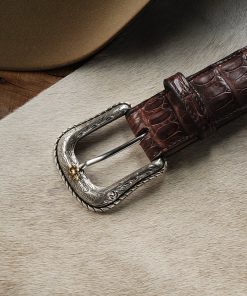 Crafted from genuine Caiman leather, this belt has a 1 ½” wide cigar classic Caiman leather strap with western tabs. It features seven holes on the point end to ensure a proper fit for all body types and is finished with a two-tone Stetson buckle. Combining timeless western style with statement-making luxury materials, each of our exotic belts embodies our legendary commitment to quality and attention to detail