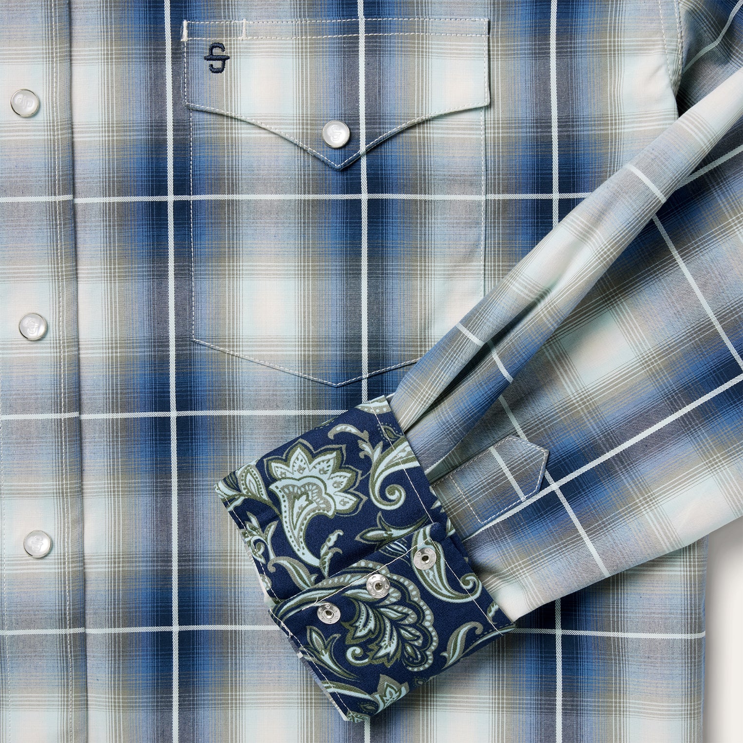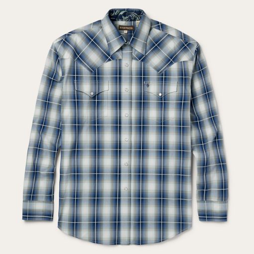 Stetson Crystal Plaid Western Shirt Blue | Mens Shirts