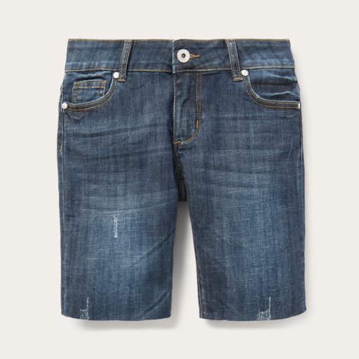 Crafted from ultra-soft denim, these dark wash mid-thigh-length shorts are cut in a relaxed low-rise, skinny fit. Lightweight and just-stretchy-enough, they fit comfortably and snugly, while still providing plenty of freedom to move around.Details include subtle back pockets and raw edge hems for the perfect worn-in feel. The complete look is finished off with custom Stetson-branded hardware. Designed to look great, fit right, and work hard, the careful styling of these bold shorts is made for women with an independent spirit and love of heritage craftsmanship.