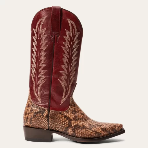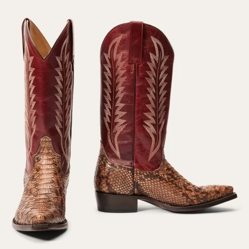 Make a statement in the richly textured, naturally finished boots. These tough, hand-crafted icons are truly built for the long-haul. Well-built with genuine python vamp and a 13″ shaft, these boots can handle a hard day’s job and night out on the town. Style and artisanship come together in the form of this distinctive boot that announces to the world the arrival of an independent spirit.