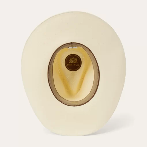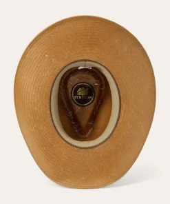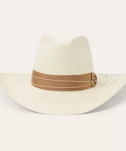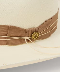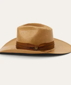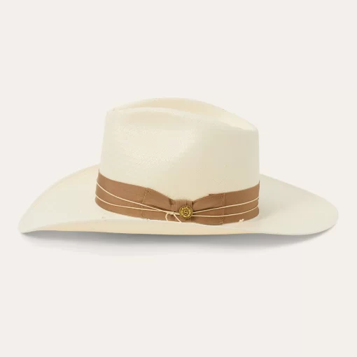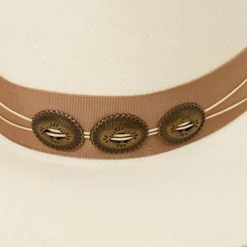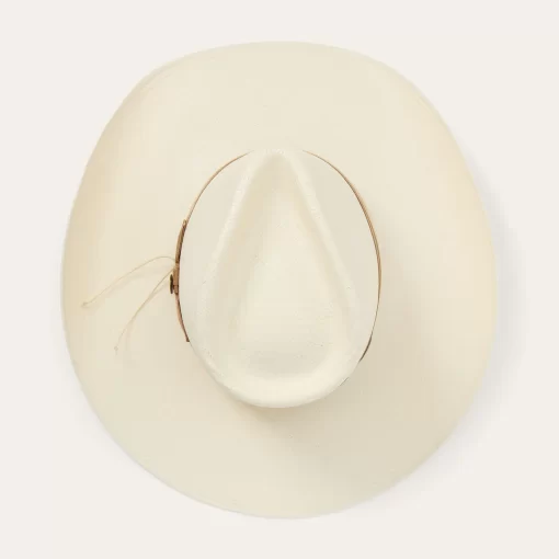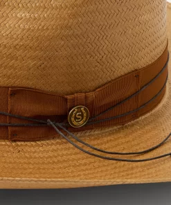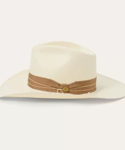 A statement-making straw fashion hat, the Enigma combines our legendary craftsmanship with a bold silhouette and eye-catching details. Handwoven one strand at a time in the U.S.A. from high-quality 100% shantung straw, it has a 4 ½” pinch front crown with a 4” brim, and it’s fitted with a medium grosgrain band and 2-ply cord wrap with gold-tone concho. Lightweight and durable, it has a firm finish to retain its shape and a DRI-LEX® Absorbent Sweatband for a comfortable, time-tested fit, making it an ideal, stylish companion for any warm-weather occasion.