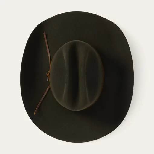 The Gibby combines legendary Stetson quality and classic western style in one timeless package. It’s crafted from our proprietary 6X fur felt, which is prized for its durability and elegant feel, and, as with all hats that come out of our factory in Texas, each Gibby is touched by more than 100 sets of hands during production, resulting in a hat that is designed and built to stand the test of time. It features a 4 5/8” cattleman crown and 4 1/4” brim, and it’s finished with a rugged rawhide leather band. A handsewn genuine leather sweatband and full satin liner provide a time-tested fit and premium comfort.