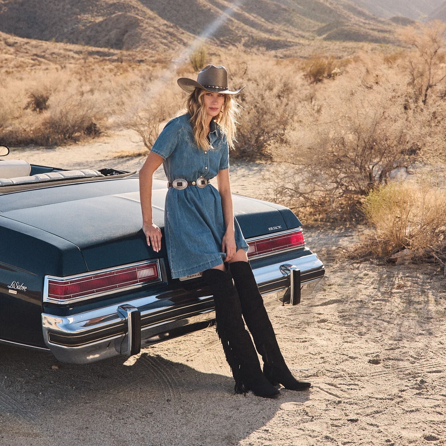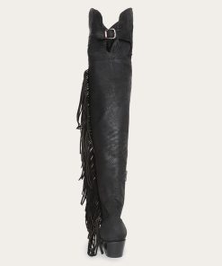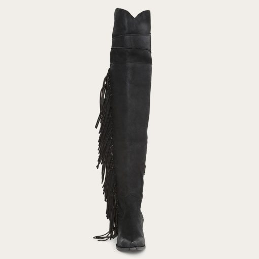 Stetson Glam Over-The-Knee Fringe Boot Black Leather | Womens Western