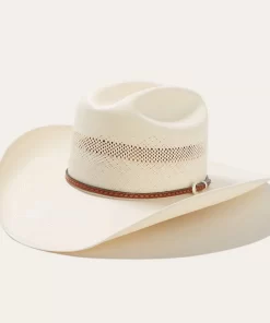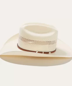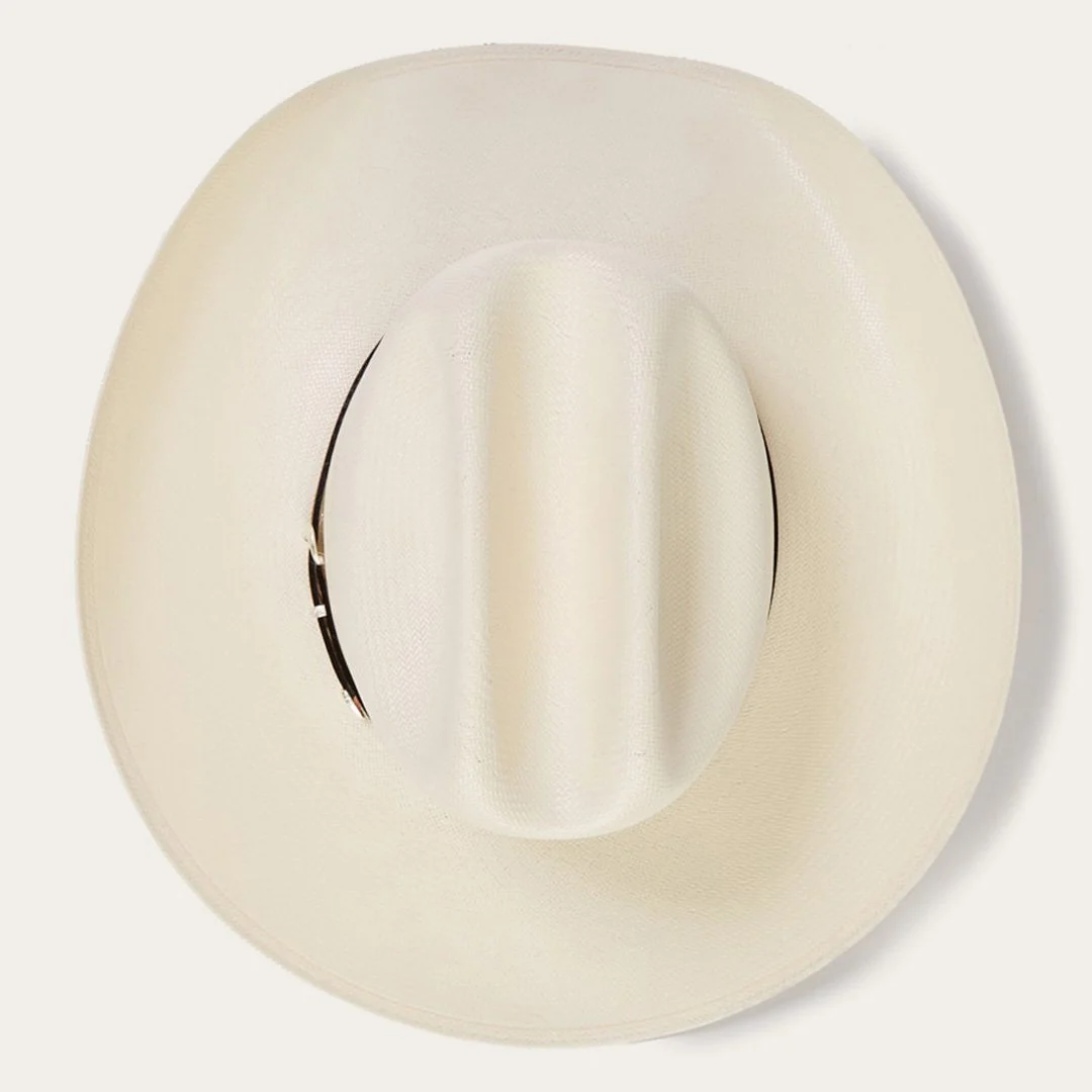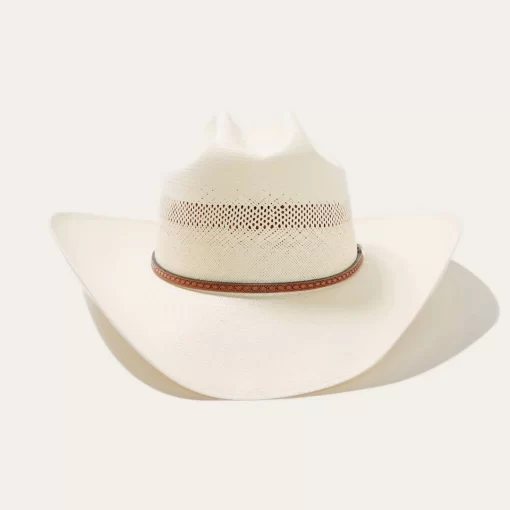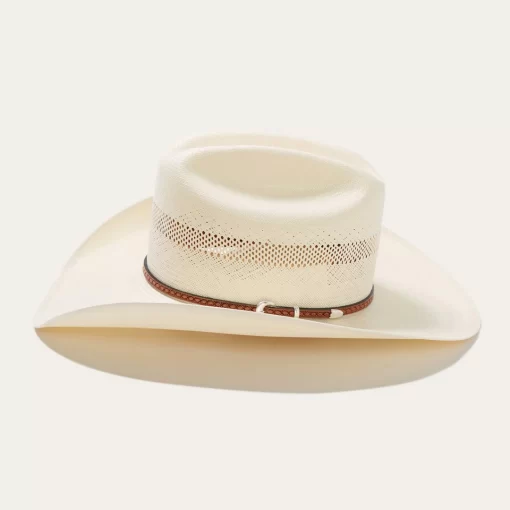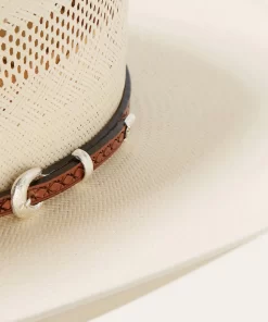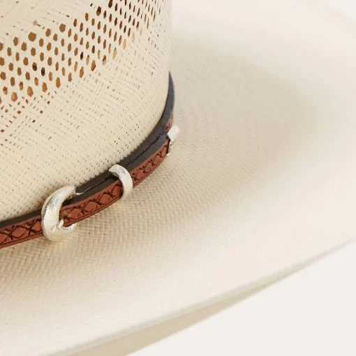 The Griffin 100X Straw Cowboy Hat is constructed of 100X quality straw with 3 BU 2×2 weave and features a ventilated cattleman crown, interior leather sweatband, leather hat band with 3-piece buckle accent. 100X Quality Straw. Made in USA.