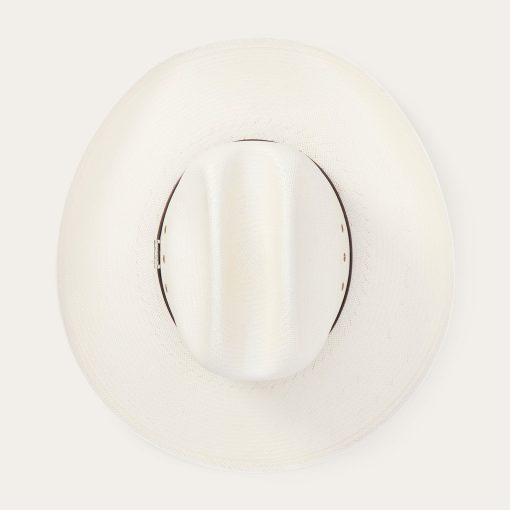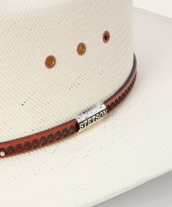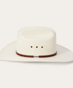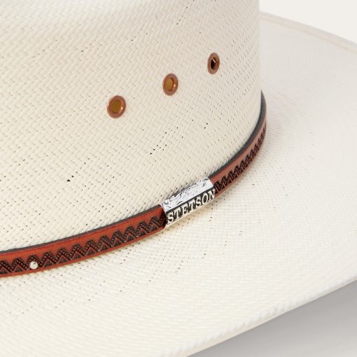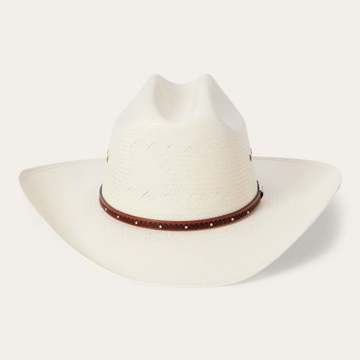 The Haywood 10X Straw Cowboy Hat is constructed of genuine 10X quality shantung straw and features a cattleman crown, eyelet venting and a tanned and tooled leather hat band. Shantung Straw. Made in USA.