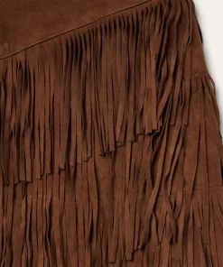 Dial up your western style with this classic fringe mini skirt. Crafted from soft lamb suede, it is lined with nylon and has a zip closure. Its decorative fringe is sure to make a statement wherever you go.
