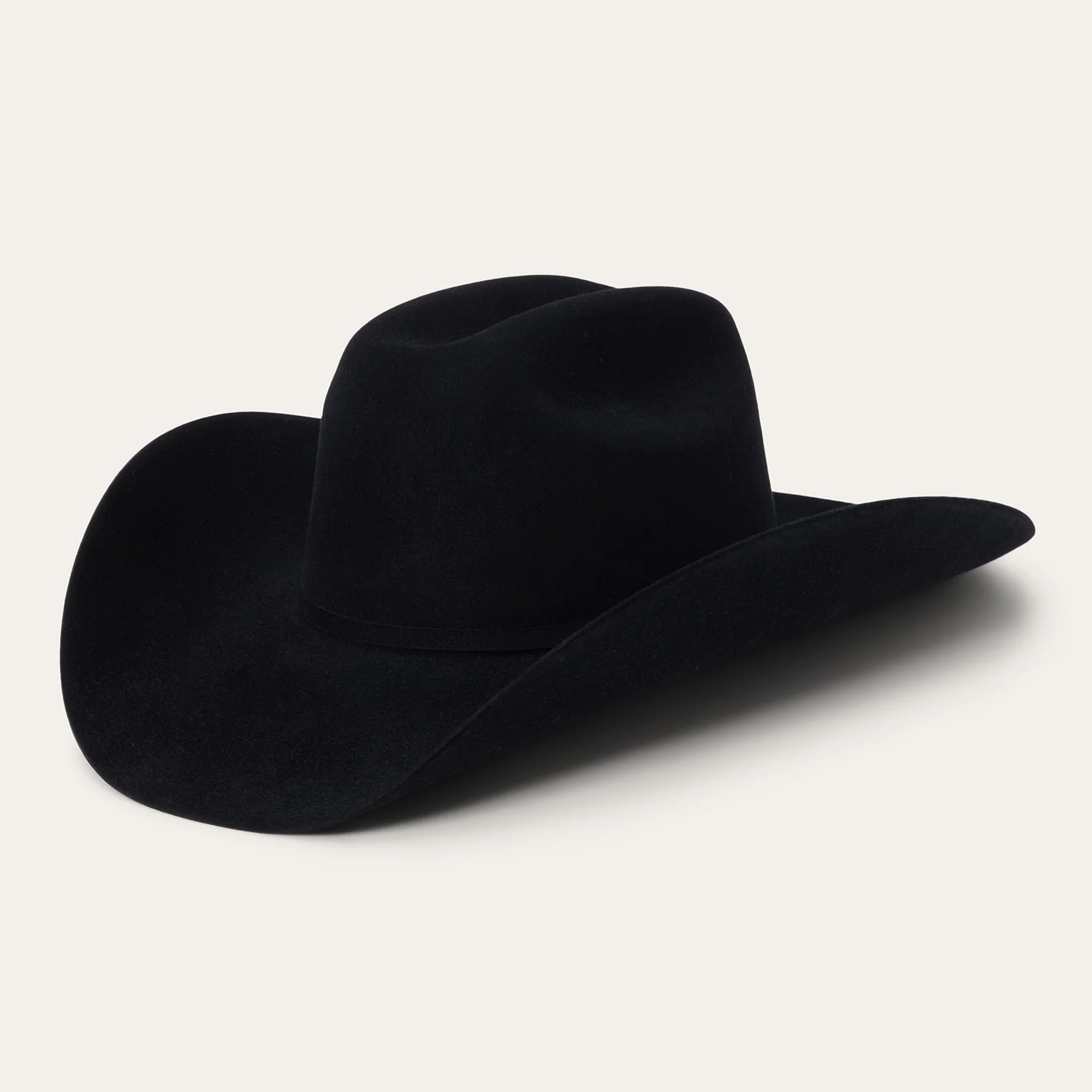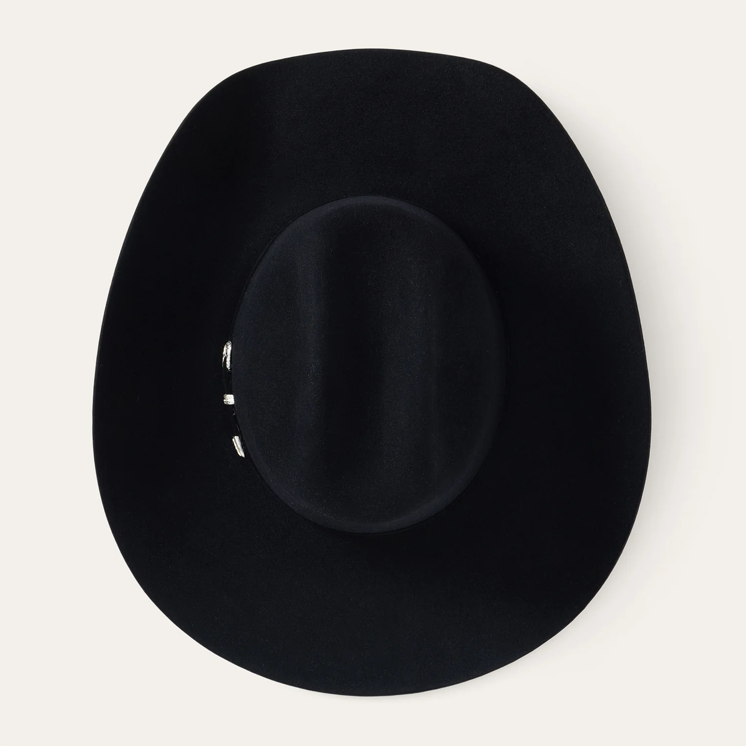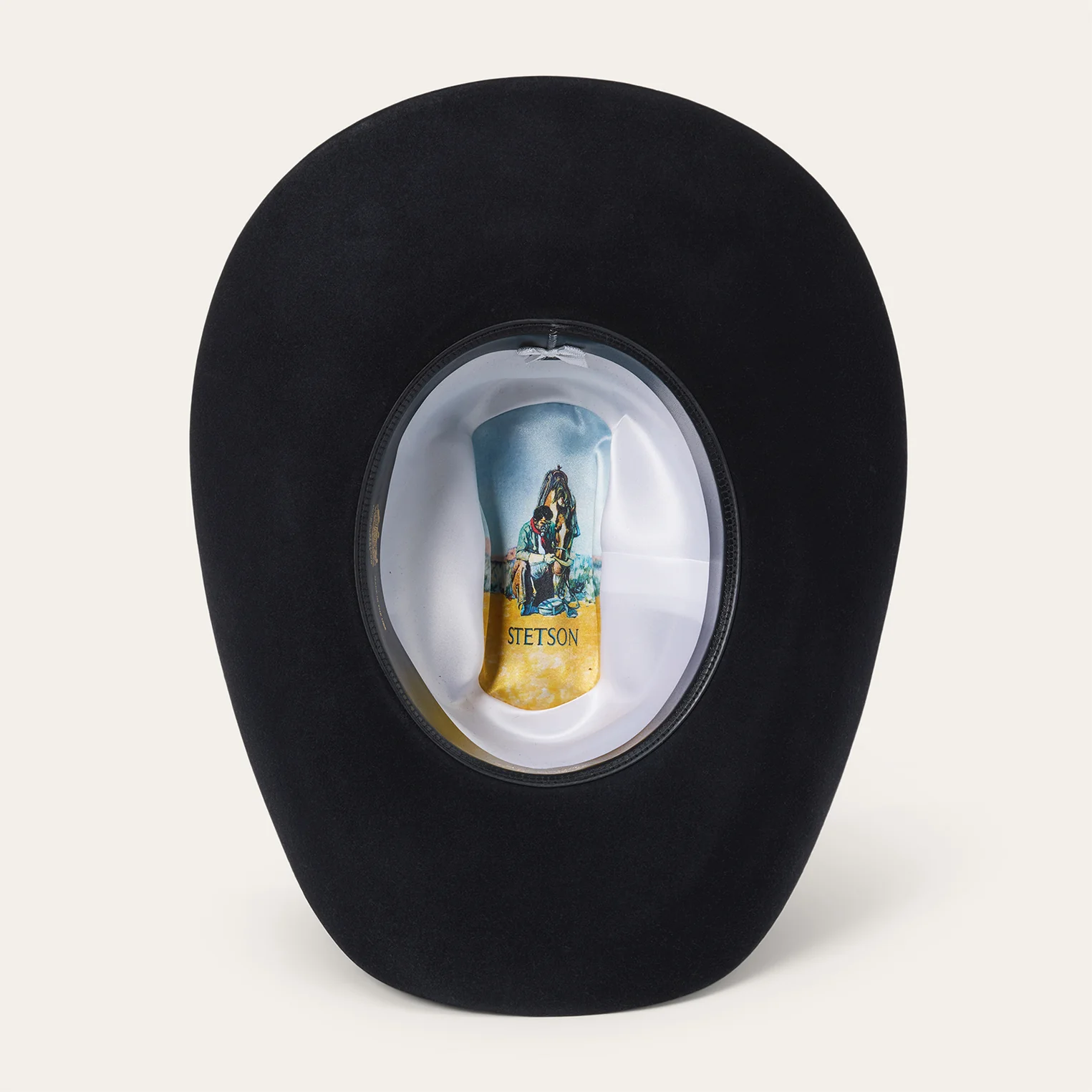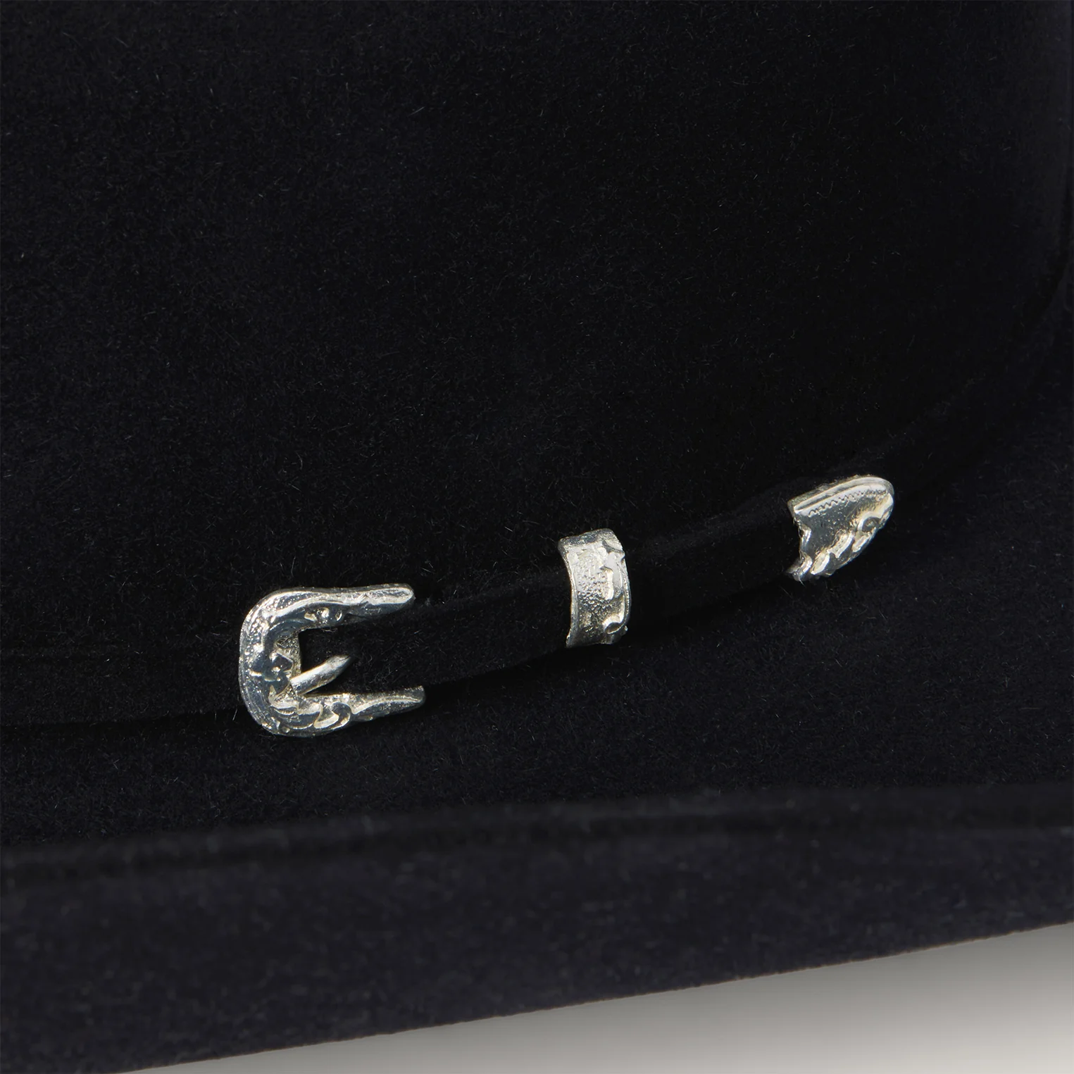The Lariat combines legendary Stetson quality and classic western style in one timeless package. It’s crafted from our proprietary 5X fur felt, which is prized for its durability, and, as with all hats that come out of our factory in Texas, each Lariat is touched by more than 100 sets of hands during production, resulting in a hat that is designed and built to stand the test of time. This edition features a 4542 profile, which translates to 4 1/4” cattleman crown and 4 1/4” brim, and it’s finished with a three-piece, silver-tone buckle set and matching self-felt hatband. A handsewn genuine leather sweatband and full satin liner provide a time-tested fit and premium comfort.