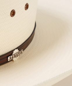 The Llano Shantung Cowboy Hat is constructed of genuine 10X shantung straw and features a dri-lex interior sweatband, studded leather hat band and side vents.