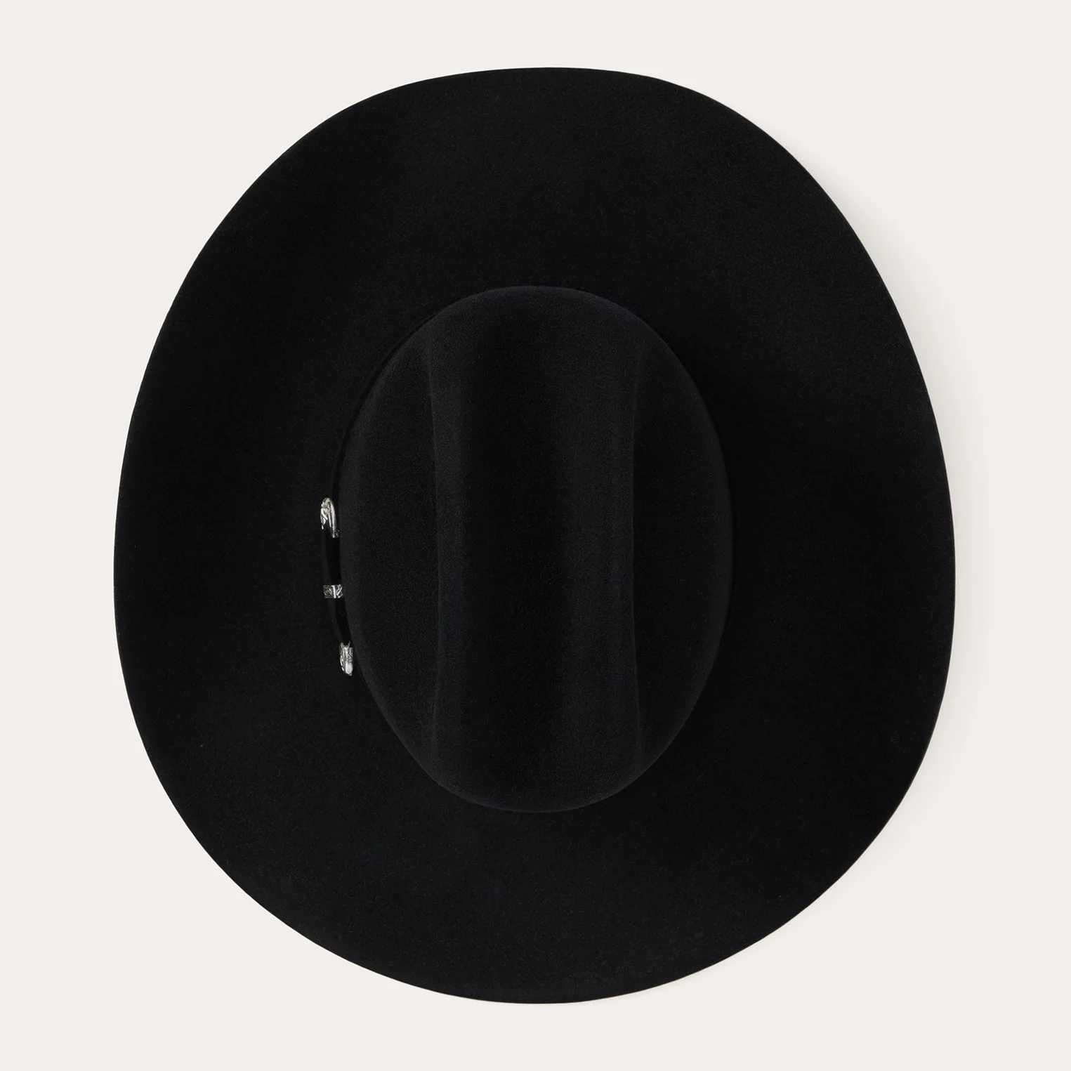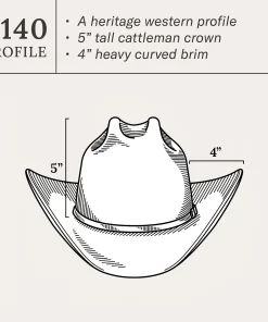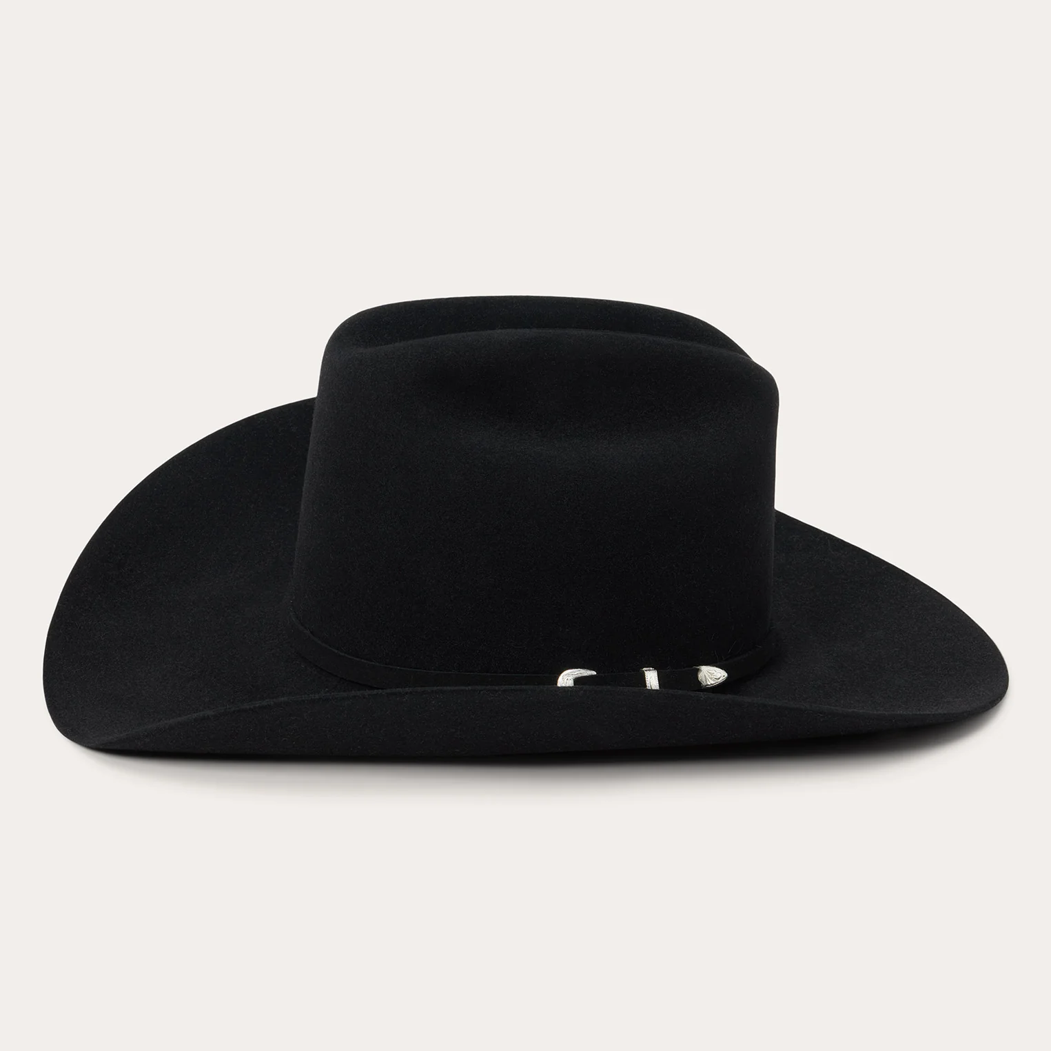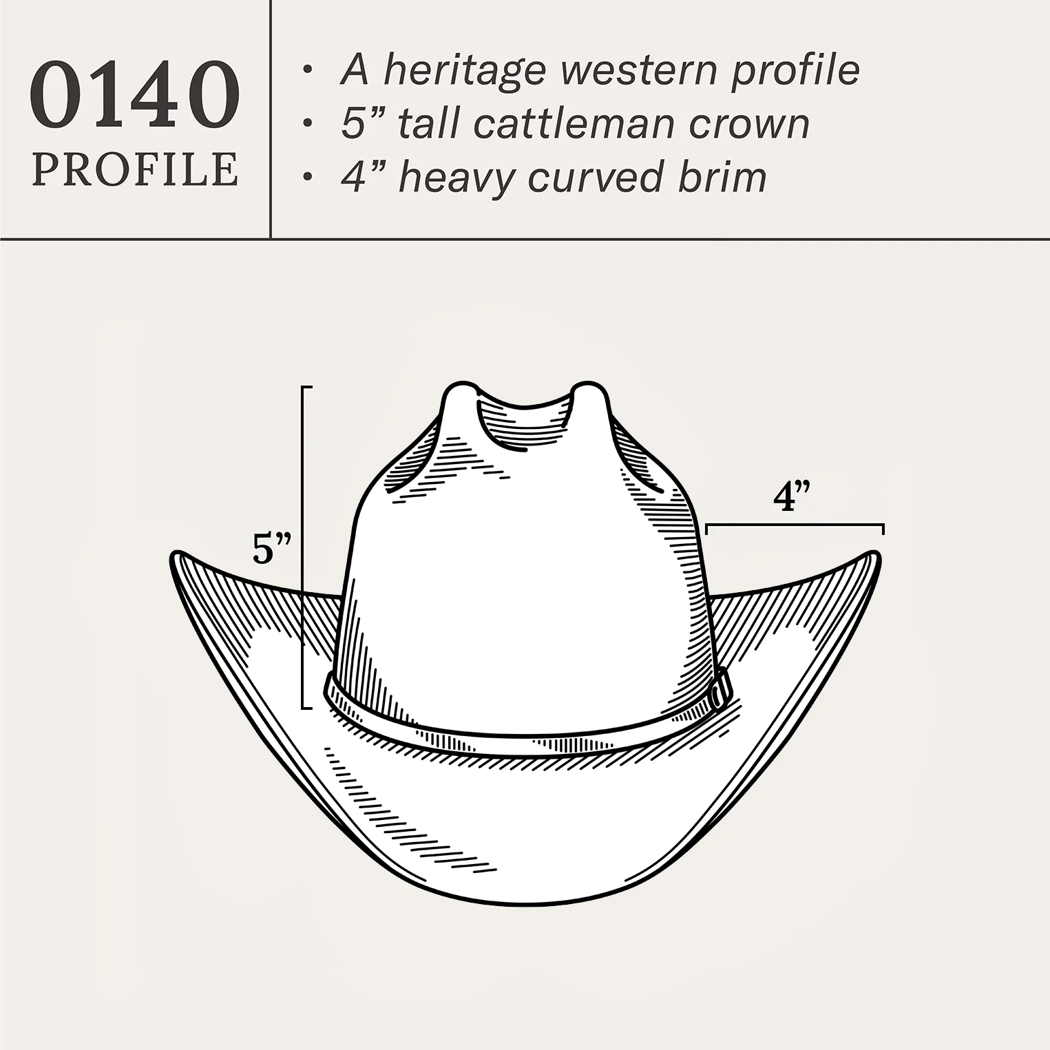 The Mezcal combines legendary Stetson quality with a heritage western profile that truly stands tall in the saddle. It’s crafted from our proprietary 6X fur felt, which is prized for its durability and elegant feel, and, as with all hats that come out of our factory in Texas, each Mezcal is touched by more than 100 sets of hands during production, resulting in a hat that is designed and built to stand the test of time. It has a 5” tall cattleman crown, 4” heavy curved brim and is finished with a matching self-felt band and engraved three-piece, silver-tone buckle. A handsewn genuine leather sweatband and full satin liner provide a time-tested fit and premium comfort.