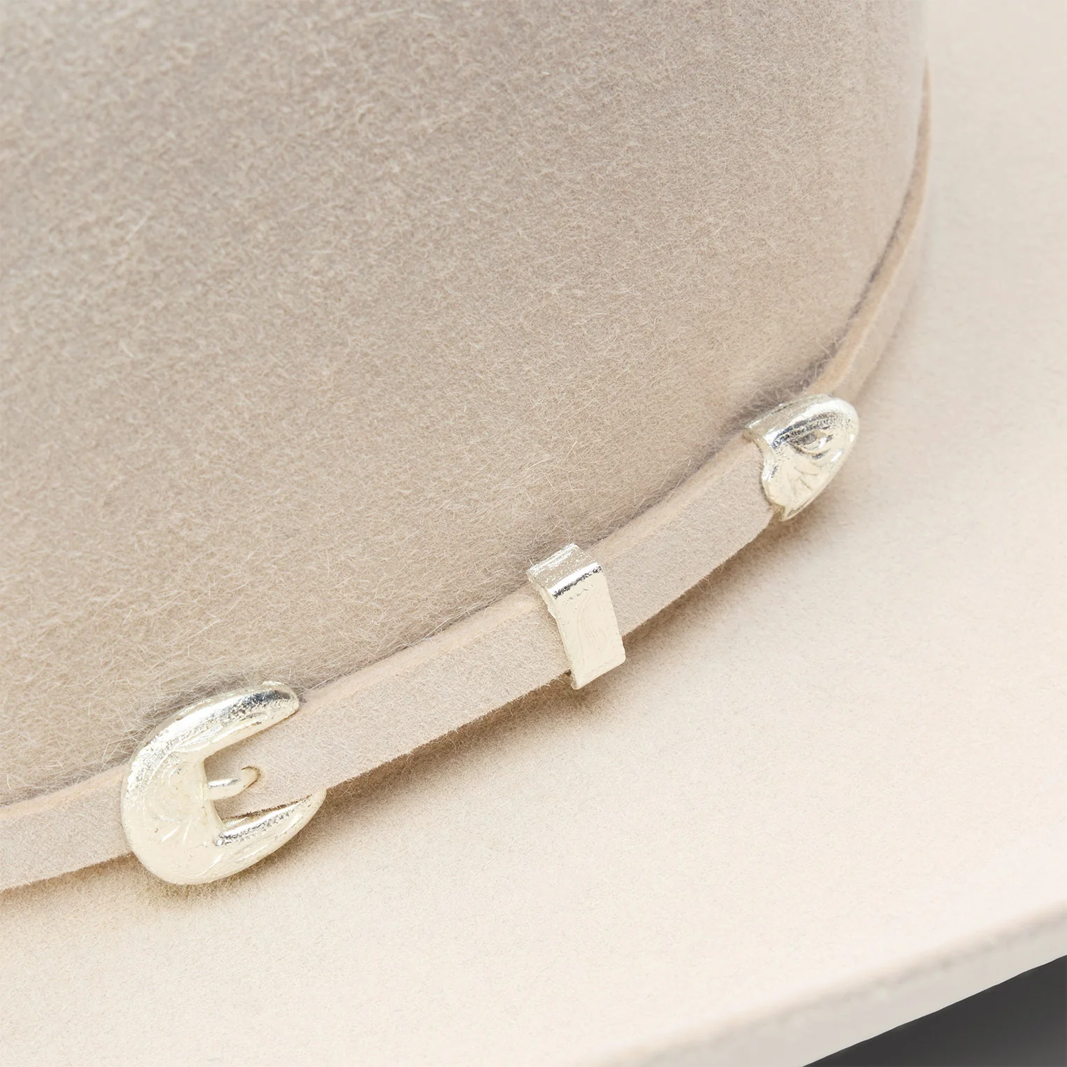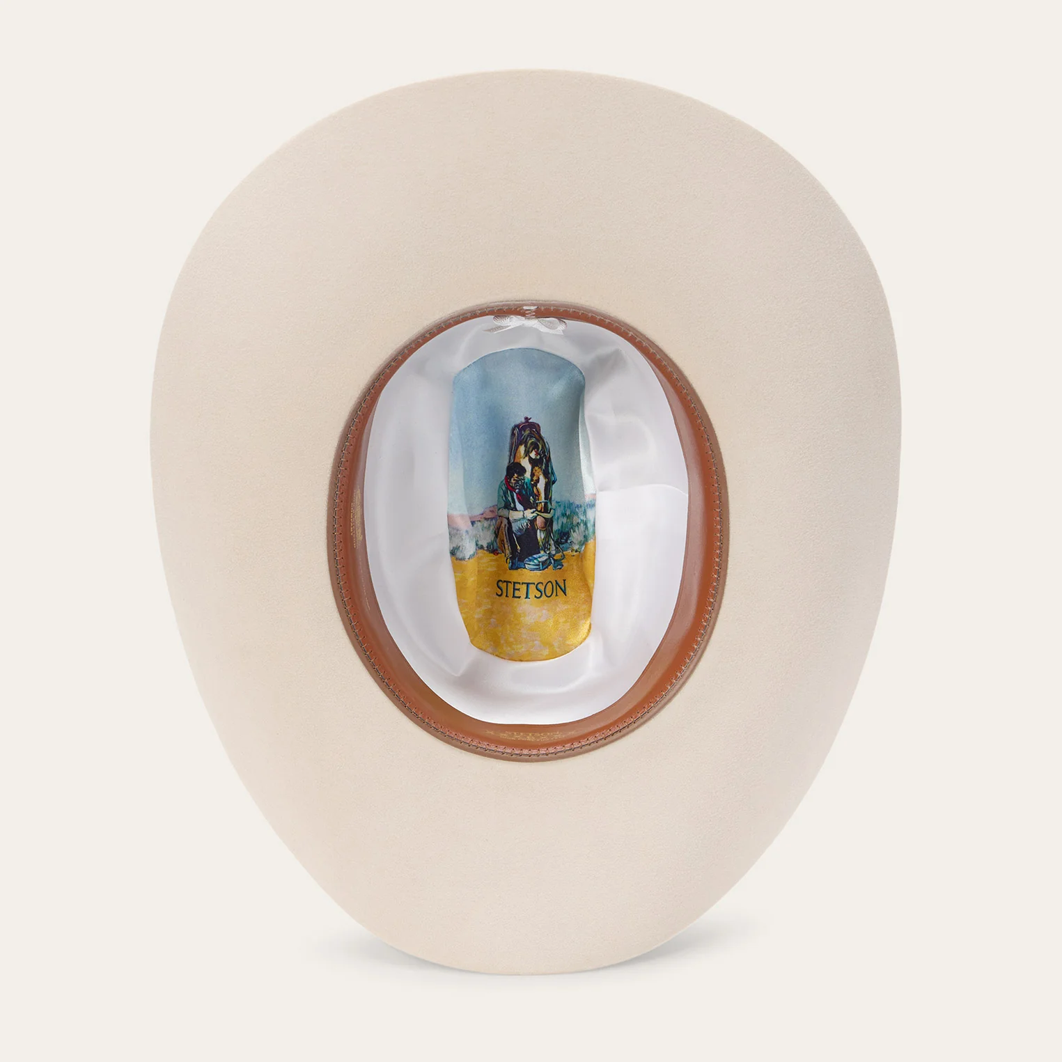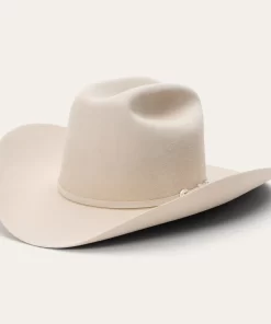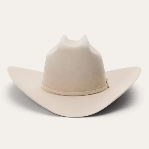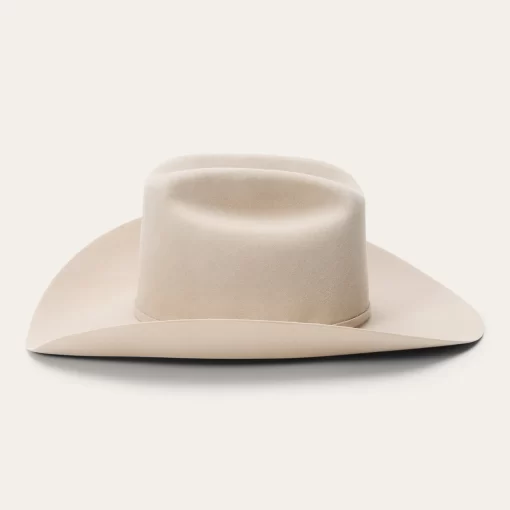The Mezcal combines legendary Stetson quality with a heritage western profile that truly stands tall in the saddle. It’s crafted from our proprietary 6X fur felt, which is prized for its durability and elegant feel, and, as with all hats that come out of our factory in Texas, each Mezcal is touched by more than 100 sets of hands during production, resulting in a hat that is designed and built to stand the test of time. It has a 5” tall cattleman crown, 4” heavy curved brim and is finished with a matching self-felt band and engraved three-piece, silver-tone buckle. A handsewn genuine leather sweatband and full satin liner provide a time-tested fit and premium comfort.