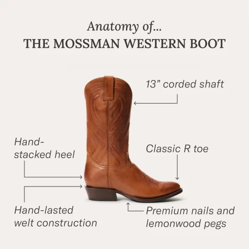 Leather boots made the old-fashioned way: with grit, determination and an acute eye for detail. Handcrafted by Stetson’s legendary bootmakers from premium Calf’s Leather that’s designed to patina handsomely over time. Features include Burnished Brown Leather Vamp and Shaft, 3/4 Welt Leather Sole With Nails & Lemonwood Pegs and removable Tru-X insoles to provide additional support. Built for riding, each pair is lasted, stitched and tooled by hand to ensure absolute comfort and performance. Frontier-tough, they conform to the wearer over time for years of reliable service. A classic addition to any wardrobe, these boots are a fitting companion for adventurers, cowboys, and gentlemen alike — anyone with a strong appreciation for objects that are made well and get better with age..
