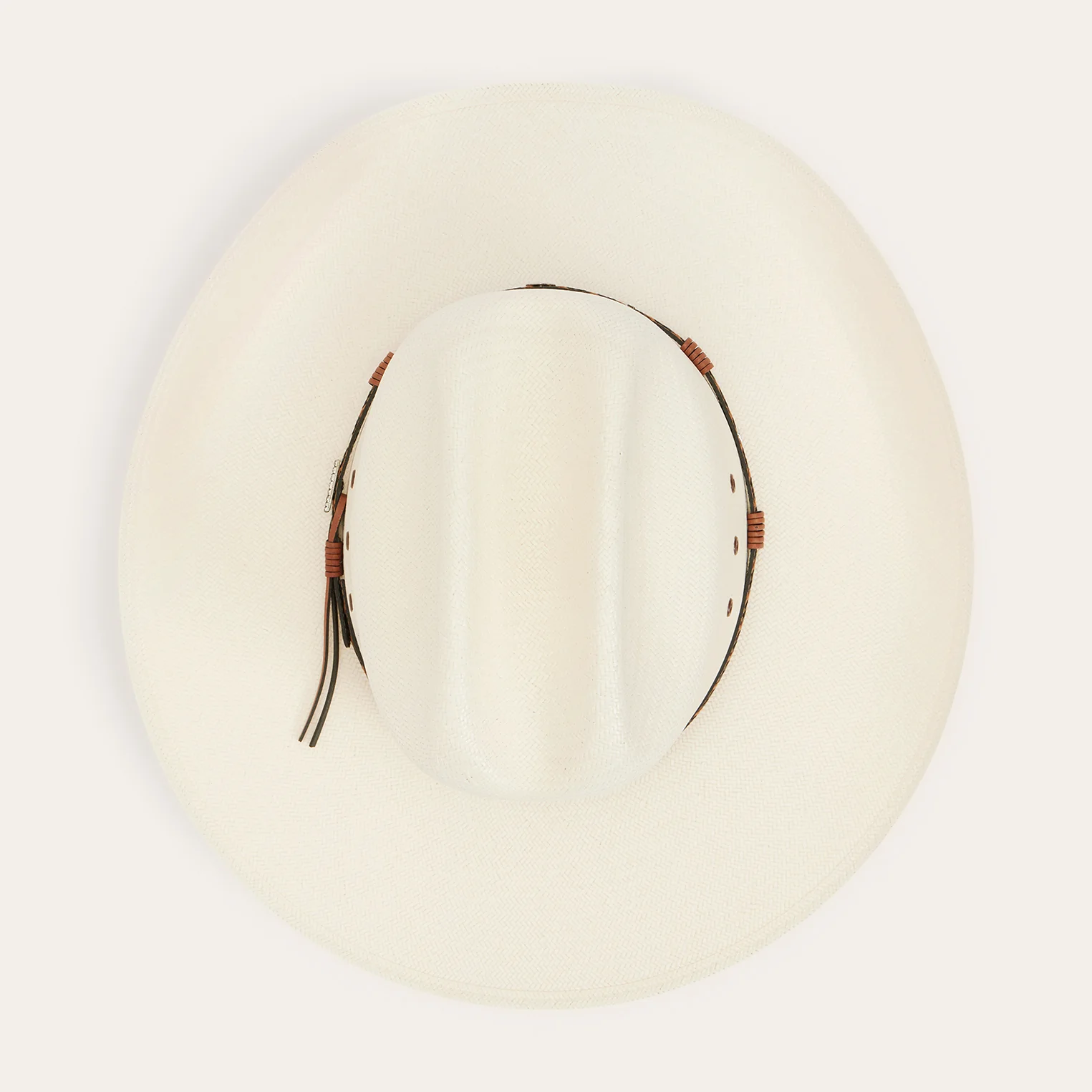 - Two-Tone Braided Leather Hat Band With Diamond-Shaped Conchos