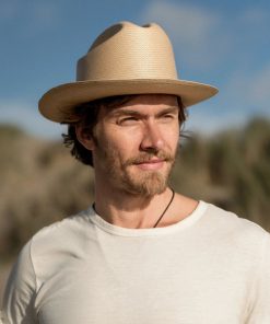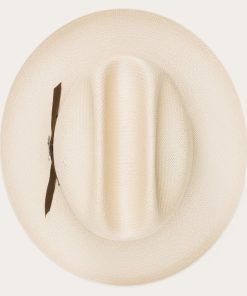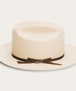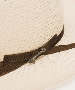 The Open Road Straw features a genuine leather sweatband and a 4 ¼” crown outfitted with a satin hat band.