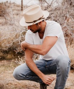 Introduced in 1937, the Open Road was originally sold with an open crown, which could then be creased to the customer’s liking. Since 1948, it has been finished with a traditional, hand-pressed cattleman crease, and has been worn by modern pioneers and trailblazers ever since, from artists and outlaws to Presidents (including, most notably, LBJ, who was rarely photographed on his Texas ranch without his Open Road).