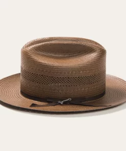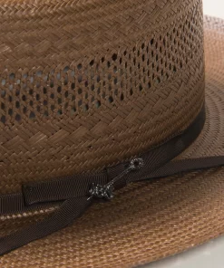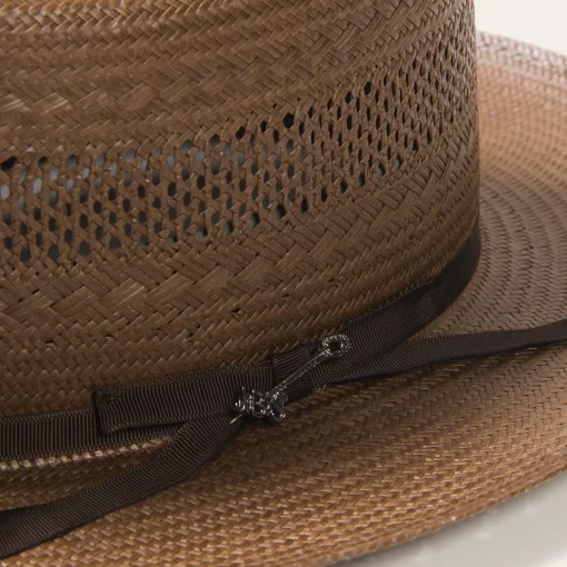 The Open Road Straw features a genuine leather sweatband and a 4 ¼” crown outfitted with a satin hat band.