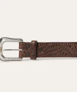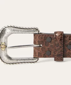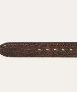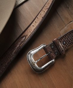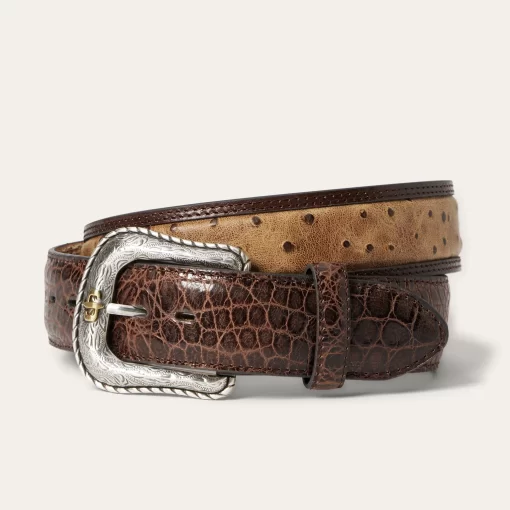 Made from top grain Italian leather, this belt has a 1 ½” wide California nut ostrich print strap and cognac croco embossed western tabs. It features seven holes on the point end to ensure a proper fit for all body types and is finished with a two-tone Stetson buckle. At once rugged and refined, each of our belts embodies our legendary commitment to quality and attention to detail.