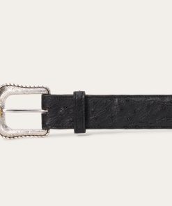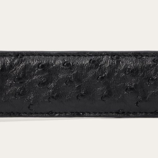 Crafted from genuine Ostrich leather, this belt has a 1 ½” wide black cowboy classic Ostrich leather strap with western tabs. It features seven holes on the point end to ensure a proper fit for all body types and is finished with a two-tone Stetson buckle. Combining timeless western style with statement-making luxury materials, each of our exotic belts embodies our legendary commitment to quality and attention to detail.