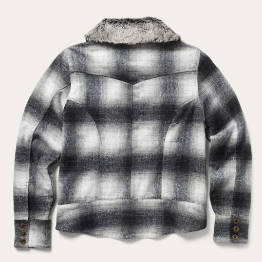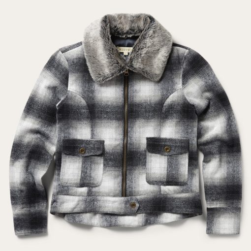 Layer up in this ombre plaid blanket coat. Made with a warm woolen blend and featuring a detachable faux fur collar for extra comfort this zip-front jacket fits just right with a single point back yoke and princess seams.