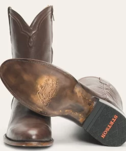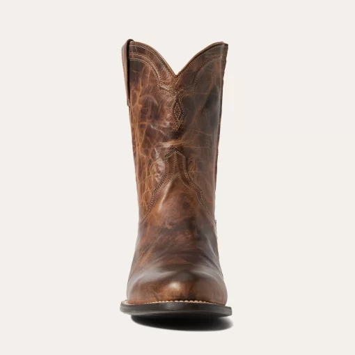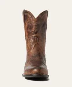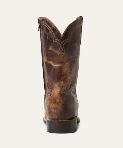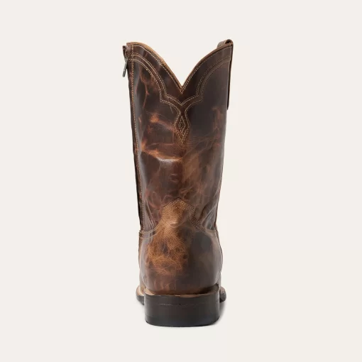 Designed for stability and comfort while wrangling calves, rugged roper-style boots have more support around the ankle than traditional western boots, along with a shorter heel. The Rancher Zip Boot is a roper with a convenient side zipper. It has a leather vamp and 10” corded crown shaft and features an R toe—a classic all-purpose style that also dresses up well—as well as a stacked leather walking heel and intricate hand cording. Its quality construction includes 3⁄4 welt soles, brass nails and handmade lemonwood pegs that will expand and contract with any moisture the boot may encounter. Premium leather lining and a removable Tru-X insole ensure comfort in every step.