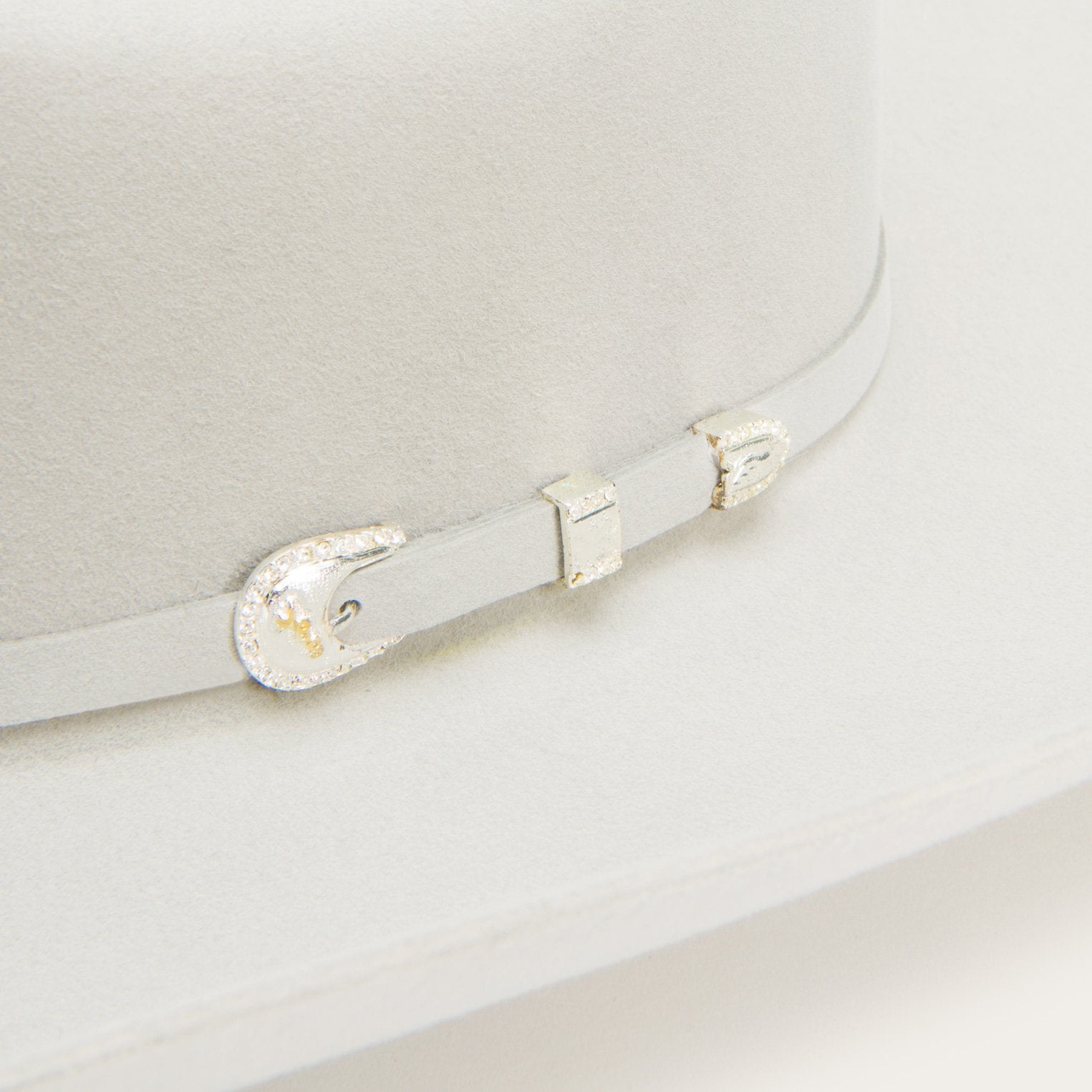As rugged as the mountain that bears its name, the Shasta 10X Premier Cowboy Hat is constructed of 10X beaver fur felt for unbeatable softness and resilience. The Shasta features a classic cattleman crown, breathable leather interior sweatband and 3-piece sterling silver buckle accented hat band. Proudly built in Texas and made to stand out like a mountain among the hills.