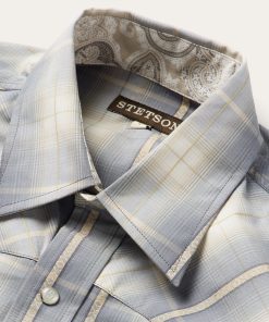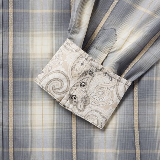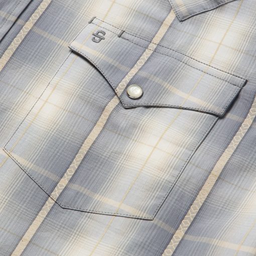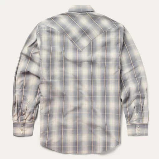 This western shirt is crafted from high-quality 100% cotton and features an exclusive Smoke Diamonds plaid with satin and dobby stitch. It has a one point curved front yoke, two point ultra deep curved back yoke, contrast inside trim, classic snap front with logo snaps, and three snap cuffs, along with embroidered logo details. Cut in our relaxed Classic Fit, a traditional working cowboy style that offers full freedom of movement and a longer hem that’s designed to stay tucked-in while riding.