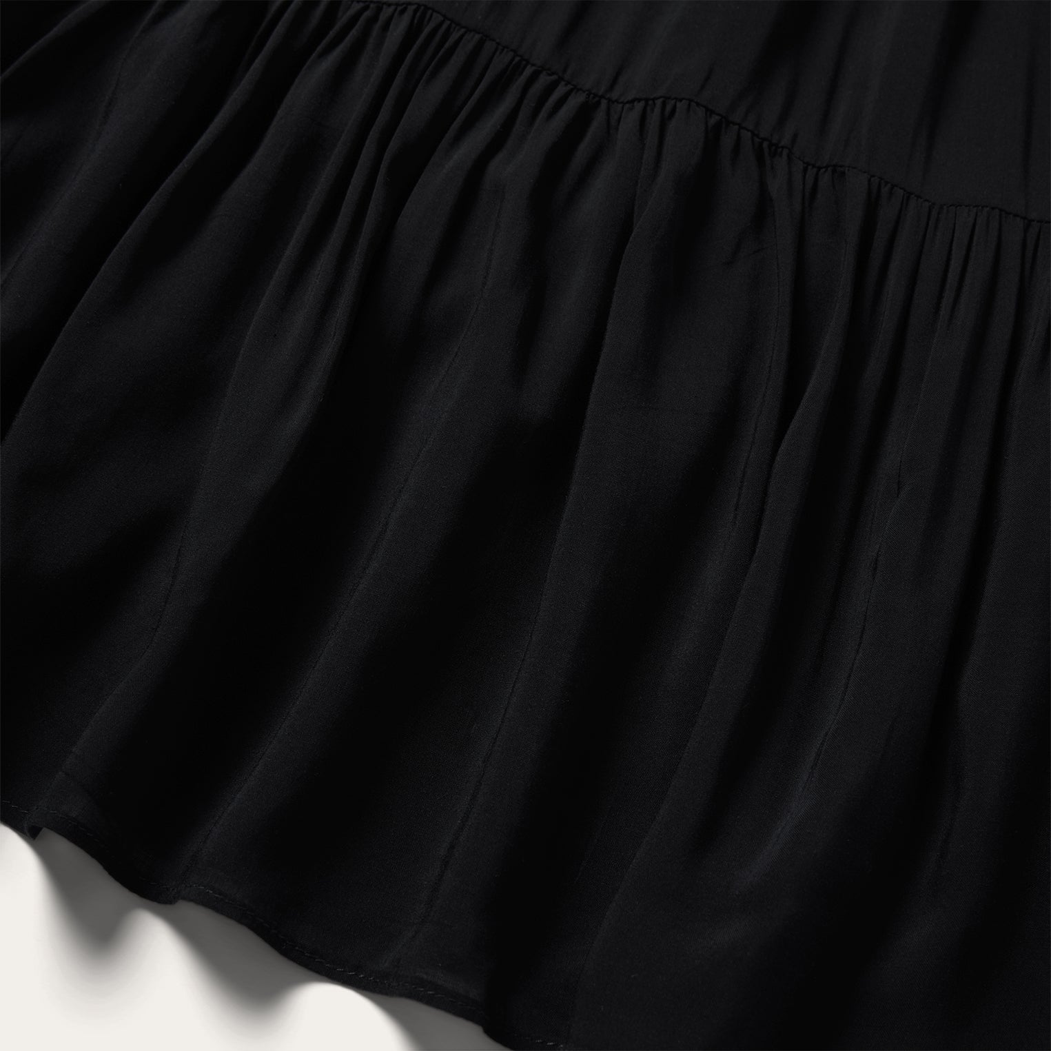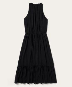 This sleeveless prairie dress is crafted from soft, silky 100% rayon and features a ruffled collar with self-covered button closure and keyhole, elastic at the waist and ruffled hemline. Fully lined, it’s cut with an easy drape, in a flattering fit which allows for comfort and freedom of movement.