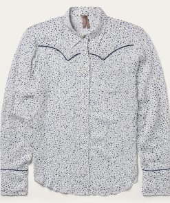 This stylish western-inspired shirt is crafted from soft 100% rayon and features our exclusive Stars Print. It has single point deep curved front and back yokes and a single point patch pocket, along with a full snap front. Cut with an easy, flattering drape, the blouse allows for all-day comfort and freedom of movement.