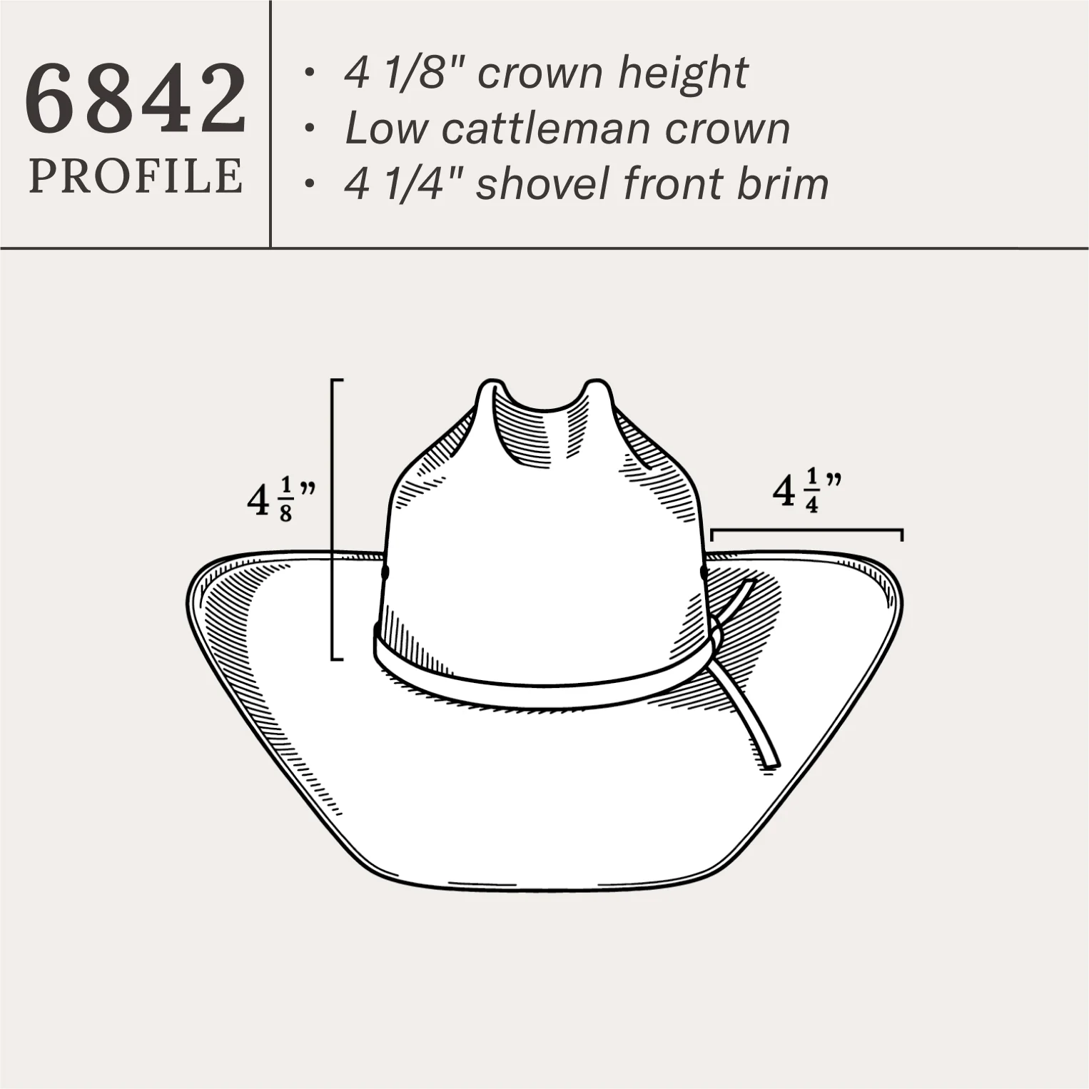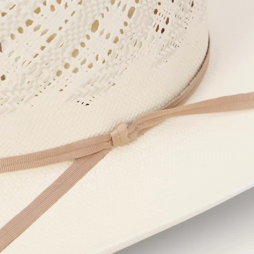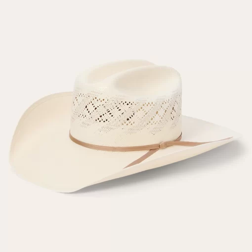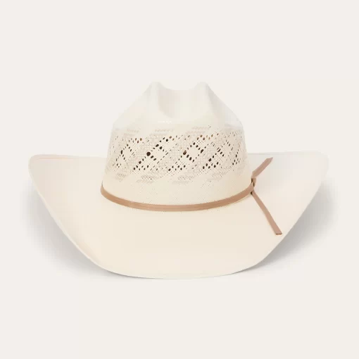 Handmade in the U.S.A. from high-quality shantung, the Thunder 10X Straw Cowboy Hat has a 4 1/4” brim and a 4 1/8” vented cattleman crown for superior circulation and breathability. The crown is finished with a 2-ply cord hat band and branding iron hat pin bearing the initials “JBS”, a nod to our founder, John B. Stetson, whose pioneering legacy lives on in every hat we sell. An absorbent DRI-LEX® sweatband ensures premium coolness and comfort all day long.