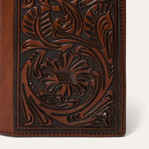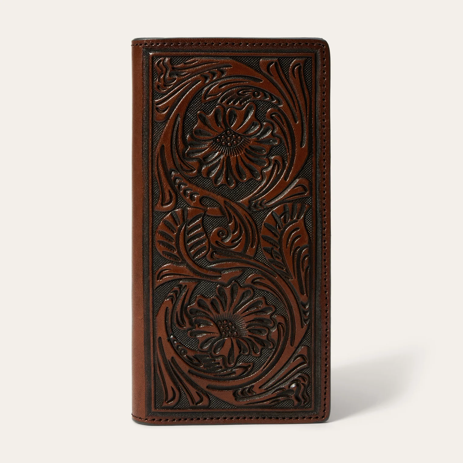 Made from top-grain leather, this checkbook wallet features brown tooled veg tan leather. At once rugged and refined, each of our wallets embodies our legendary commitment to quality and attention to detail.