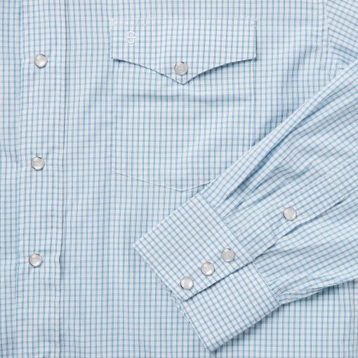 This classic snap-front Western shirt is crafted from 100% cotton that is made to get better with time and wear. Yarn-dyed for rich, lasting color, it features a two stripe check plaid and classic Western-style details including two one-point snap-closure pockets, a spread collar, one-point front and back yokes, pearl logo snaps and subtle tonal embroidery on the left chest pocket and right cuff.