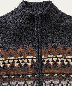 Always the best in outerwear. Come for this wool-blend cardigan’s unique and original woven pattern, but stay for its dependable warmth and comfort. It features a full-zip opening, heathered yarns and self-knitted collar, cuffs and waistband.