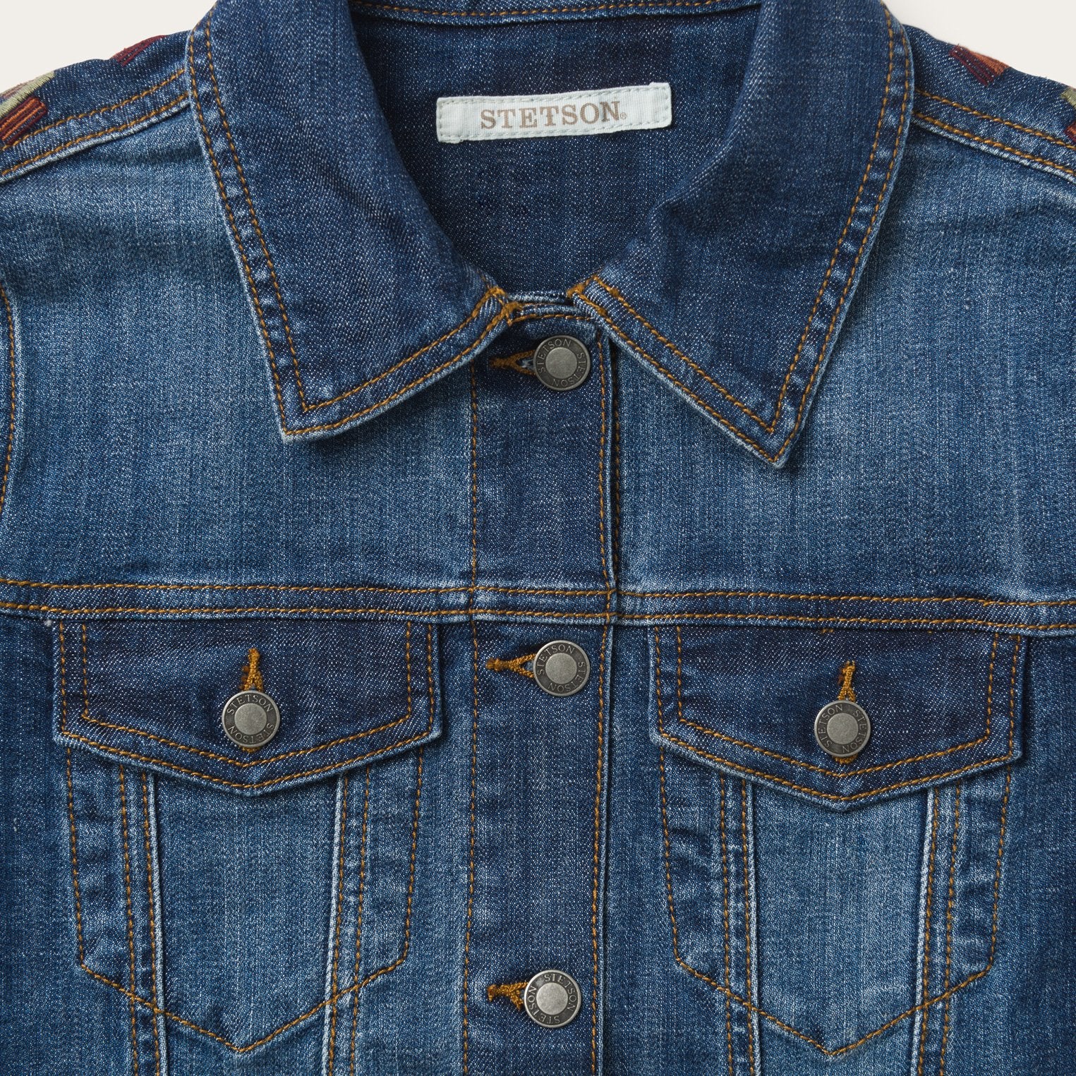 A classic style updated with premium details, this button-front, denim jacket has front and back seaming, single point chest pockets and contrast embroidery. Adds instant style when worn over your favorite graphic tees.