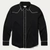 This snap front denim shirt makes a statement with its rich cream color and stunning Western-inspired embroidery. Crafted in a comfortable, flattering boyfriend fit (with just a bit of stretch), it features a single point front yoke, a straight back yoke, single point pockets with flaps and snap closures and a single snap cuff.
