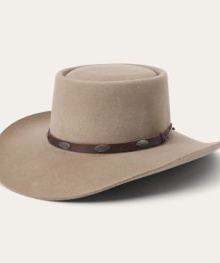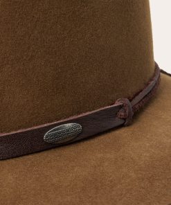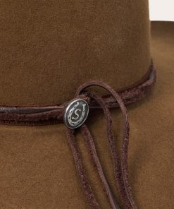 This western-inspired fashion hat brings a welcome pop of Cowboy Core to any look. Its bold silhouette features a statement-making 3 1/2″ telescope crown, 3 1/2” downturn brim and leather hat band with silver-tone conchos. Handmade in the U.S.A. with a firm finish from high-quality wool felt, it’s finished with a faux leather sweatband and satin liner for a comfortable, all-day fit.